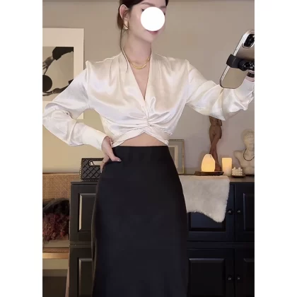 | nameOriginal | French V-neck long-sleeved irregular shirt with cross ties |