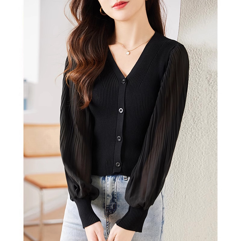 | nameOriginal | French V-neck Long-sleeved Knitted Cardigan T-shirt Women's 2024 Spring New Fashion Western Style Fashionable Slim Elegant Top |