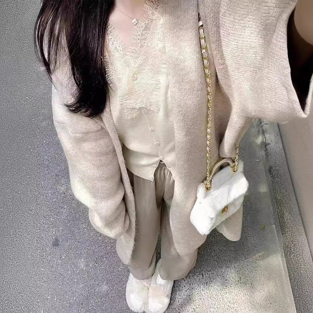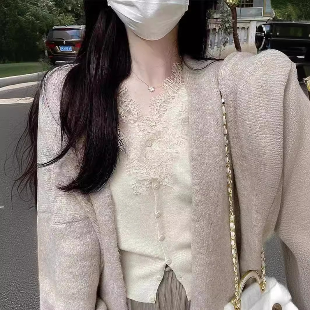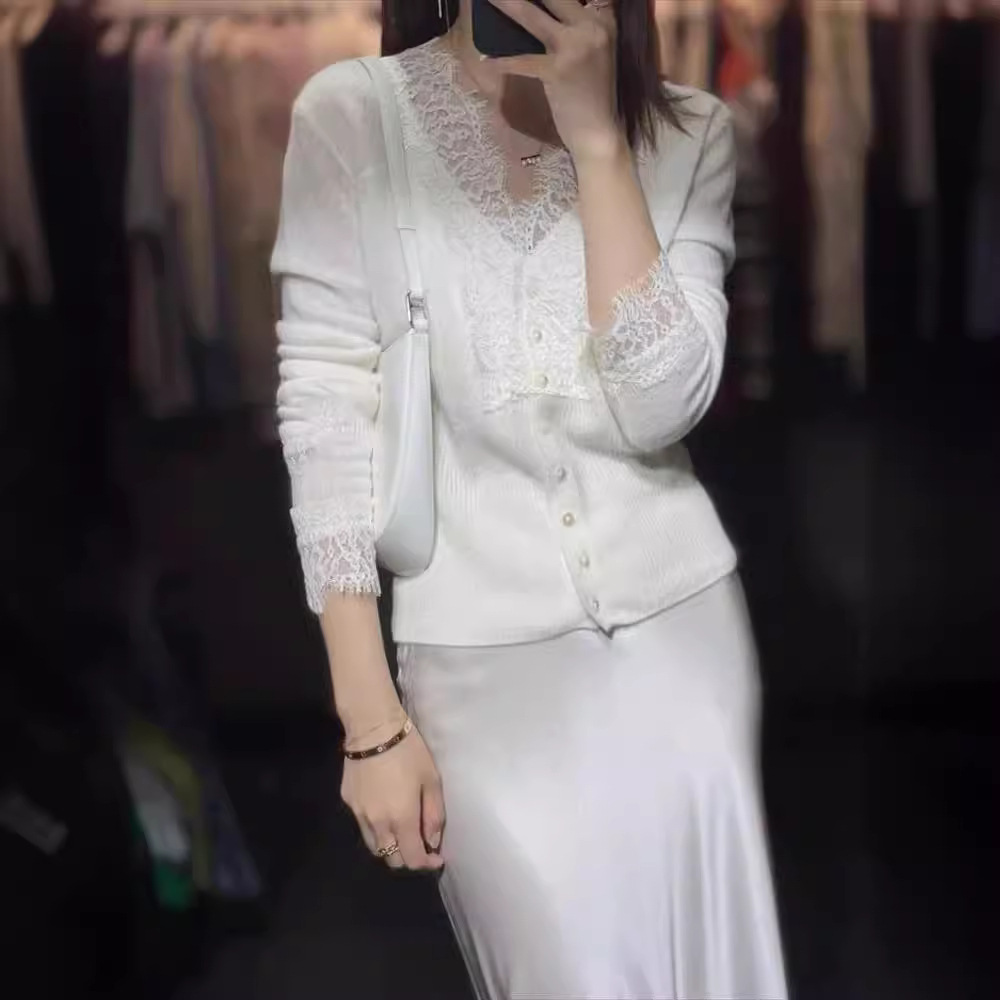 | nameOriginal | French V-neck pure desire style sweater 24 new western style fashion design lace stitching bottoming shirt for women |