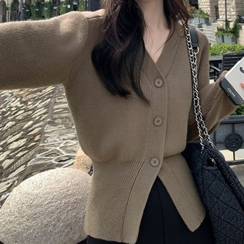 | nameOriginal | French V-neck sweater cardigan women's autumn 2024 new Korean style long sleeve short coat knitted top |