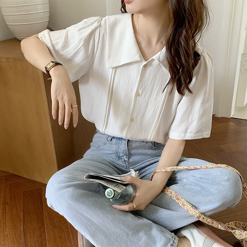 | nameOriginal | French V-neck white shirt women's short-sleeved summer design niche retro Hong Kong style short top with chic temperament |