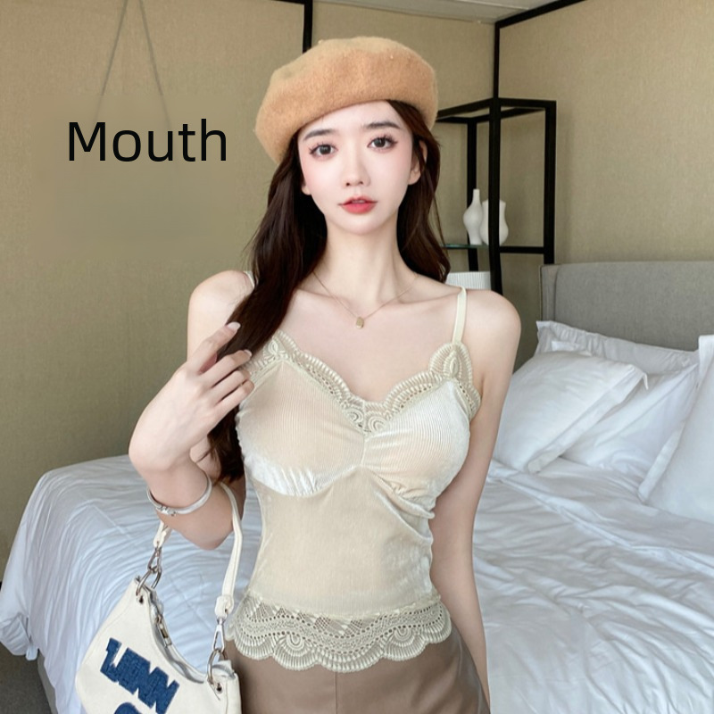 French Velvet Lace Camisole Women's Spring and Autumn Inner Wear with Chest Pad Beautiful Back Underwear Sexy Slim Base Top