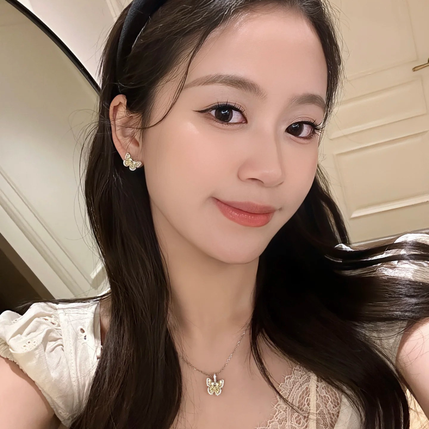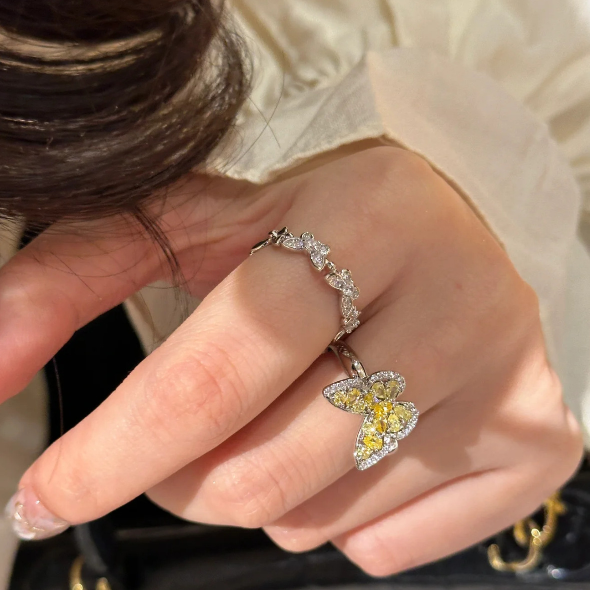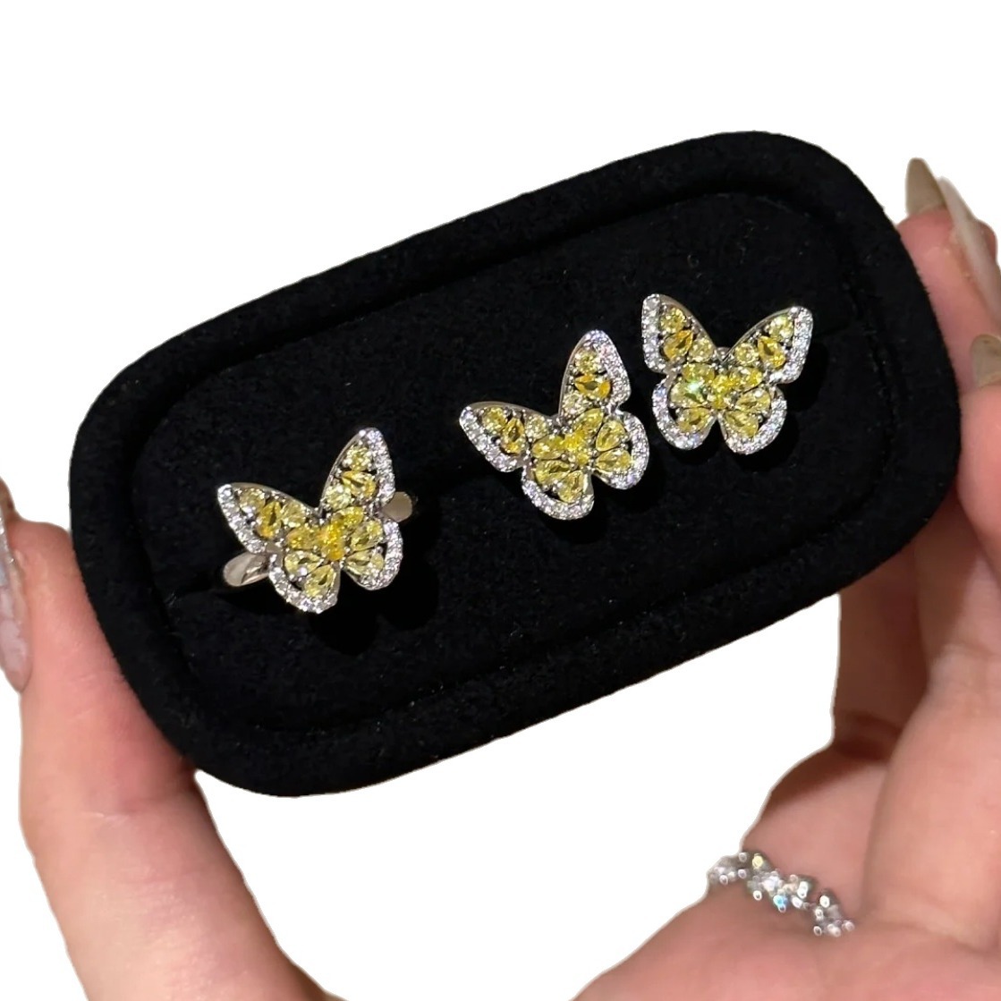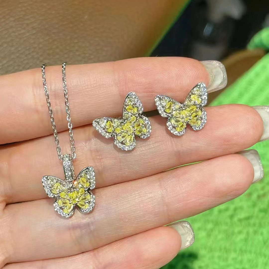 | nameOriginal | French Vintage Inlaid Diamond Citrine Butterfly Necklace Earrings Ring suit Light Luxury High-end Dream Women's Accessories |