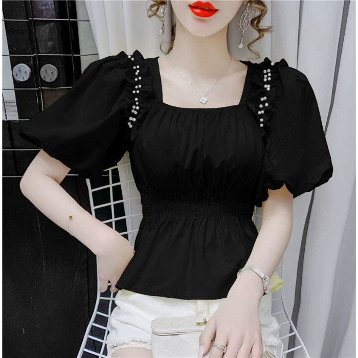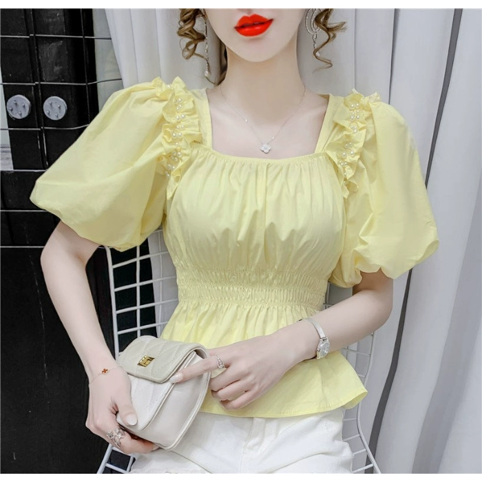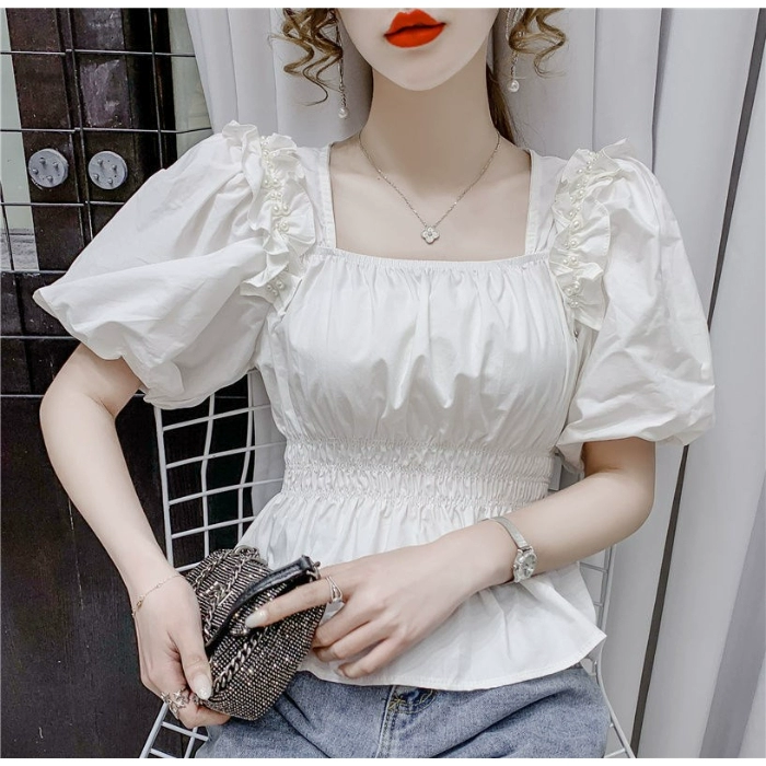 | nameOriginal | French waisted square neck short-sleeved chiffon shirt |