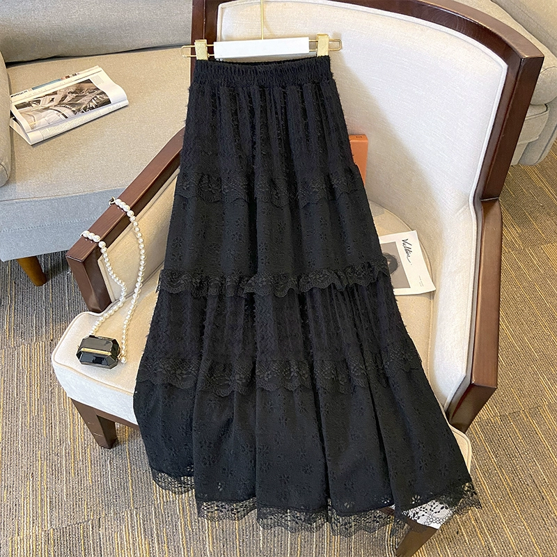 | nameOriginal | French white autumn and winter elastic long skirt with lace |