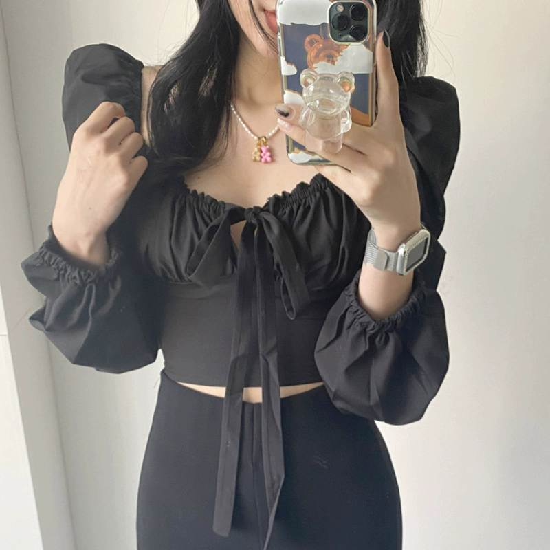 | nameOriginal | French white square collar puff sleeve short pure lust shirt |