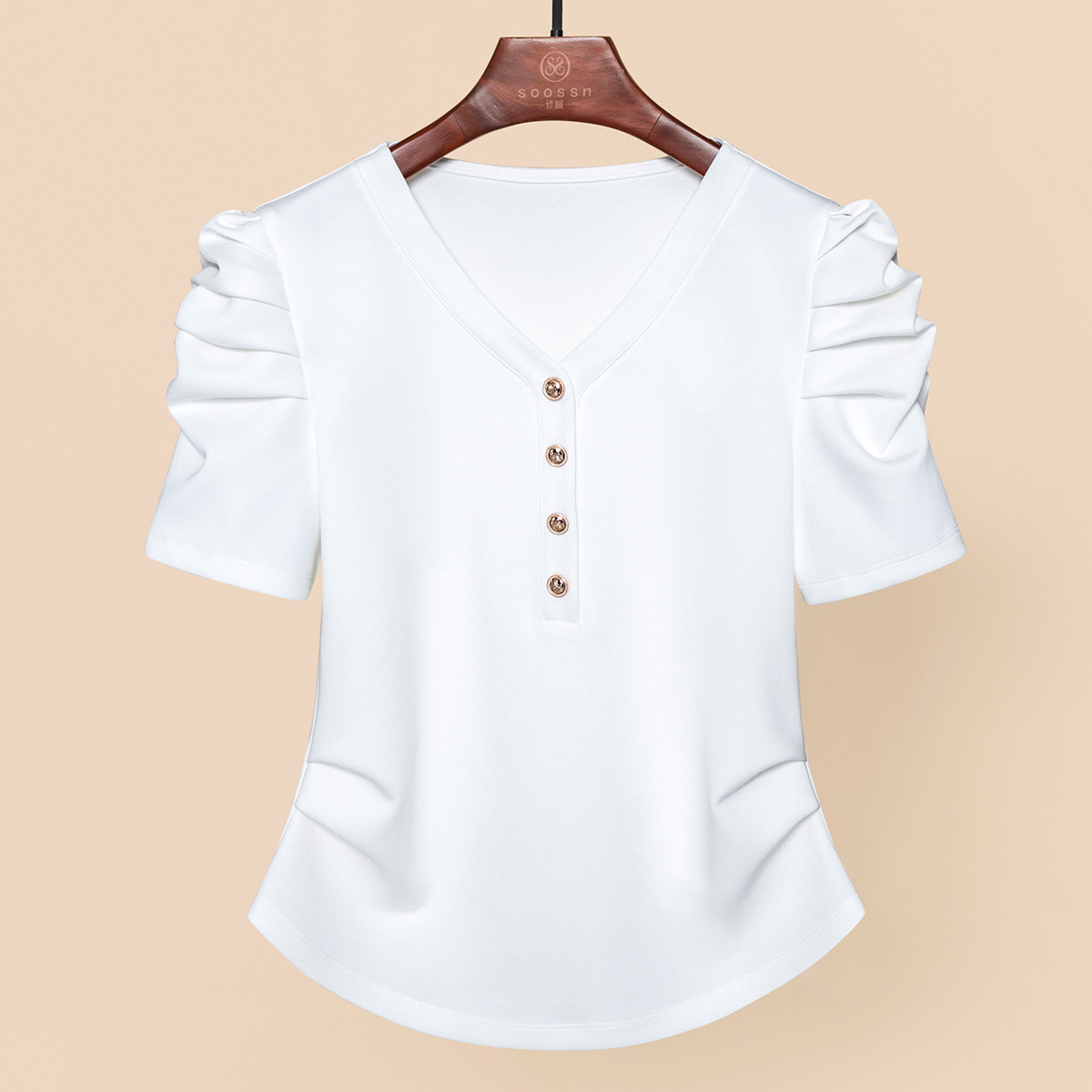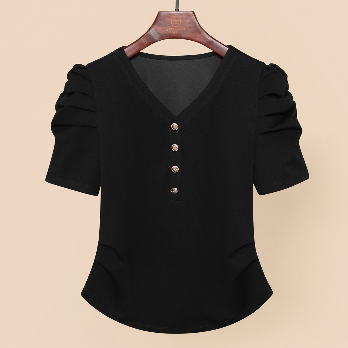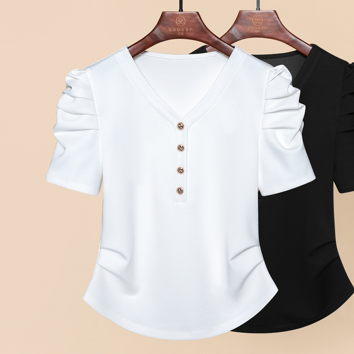| nameOriginal | French Women's V-neck Short Sleeve T-shirt Women's Summer New Puff Sleeve Slimming Chic Pleated Half Sleeve Western Style Top |