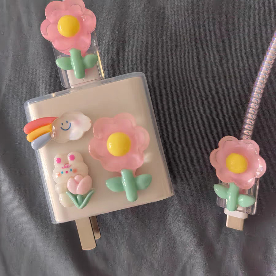 | nameOriginal | Fresh and lovely transparent flower rabbit resin accessories mobile phone case charger protective cover accessories wholesale |