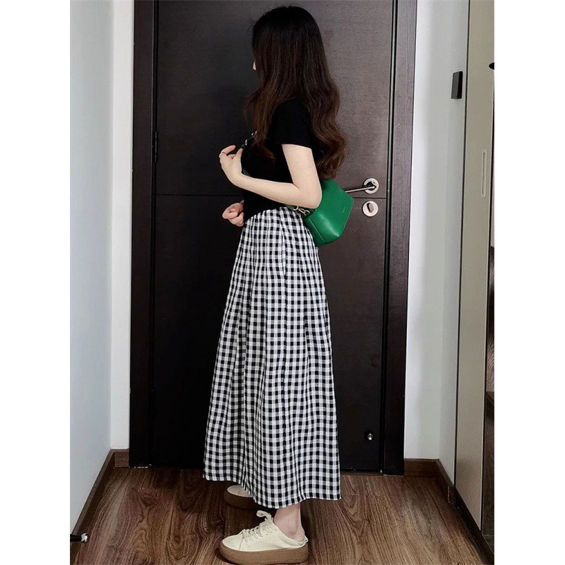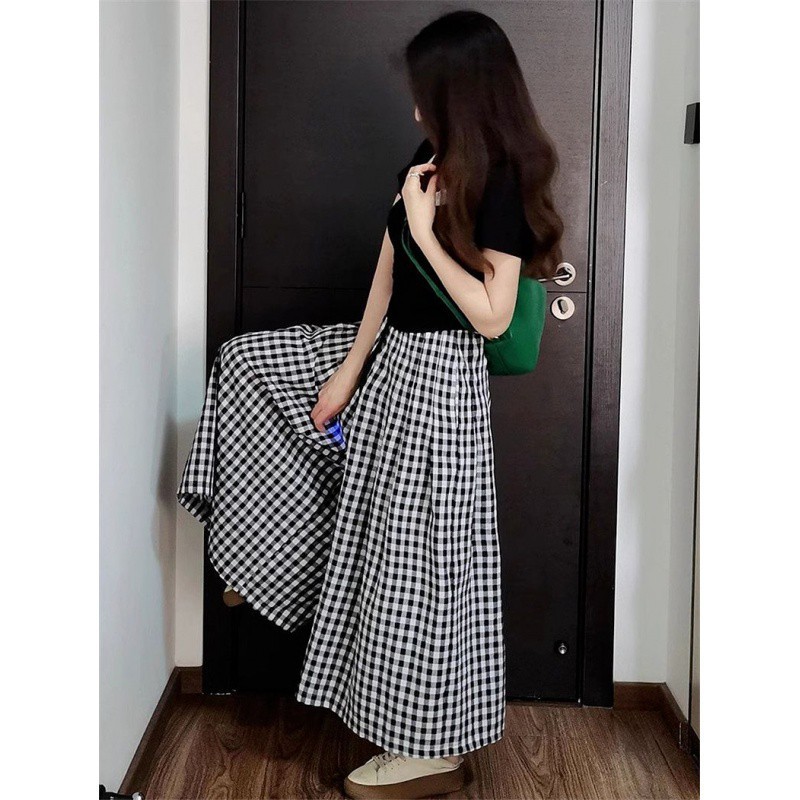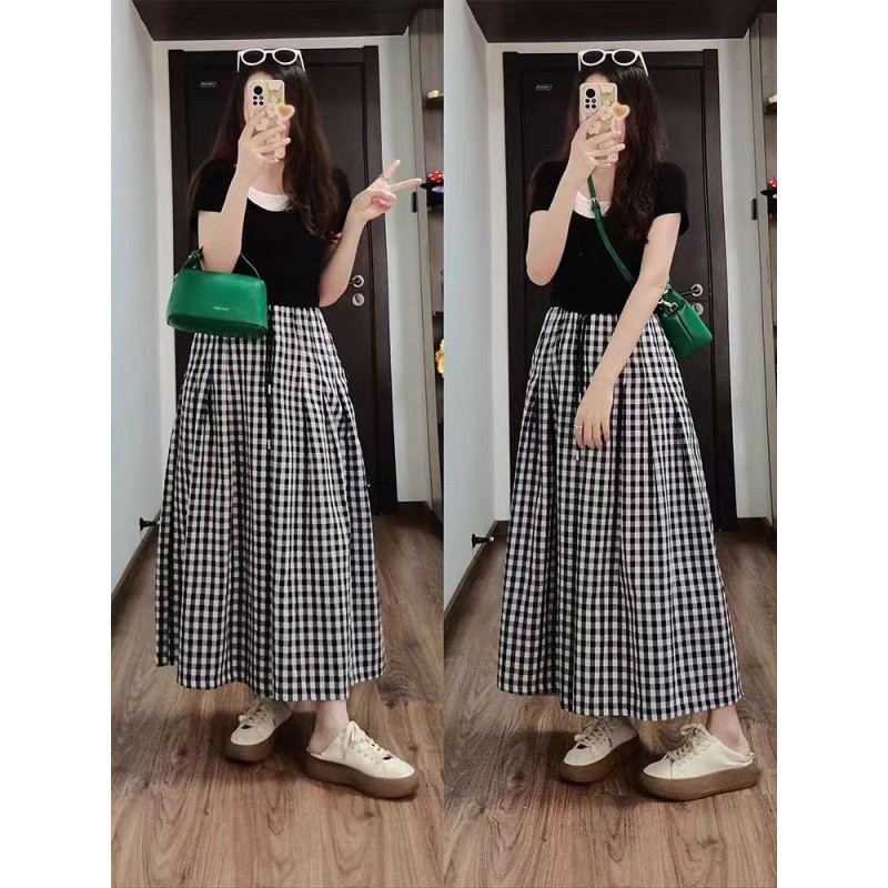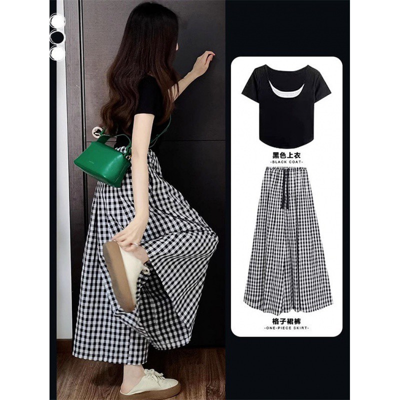 | nameOriginal | Fresh and Pure Style suit Women's Color Contrast Short-sleeved Shirt Summer Plaid Wide-leg Pants Skirt Pants Casual Two-piece Set |