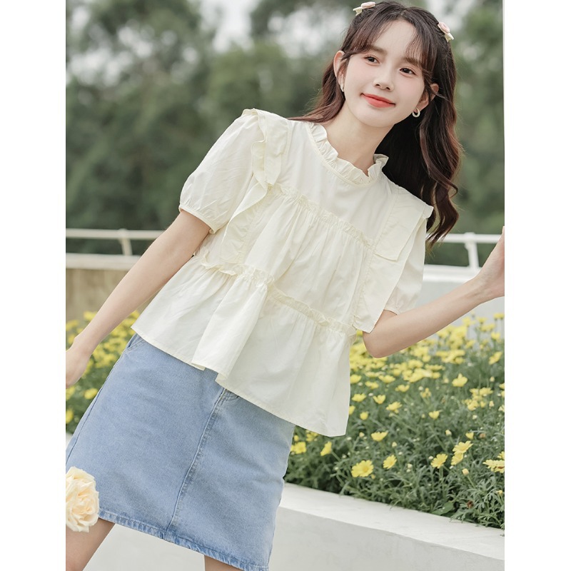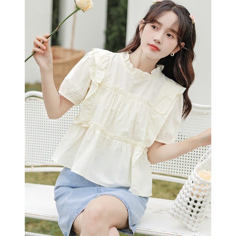 | nameOriginal | Fresh and Sweet Loose Ruffled Puff Sleeve Top Women's Chic Niche Pullover Short Sleeve Shirt Summer New |