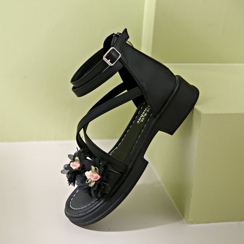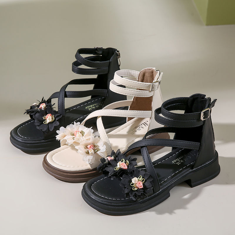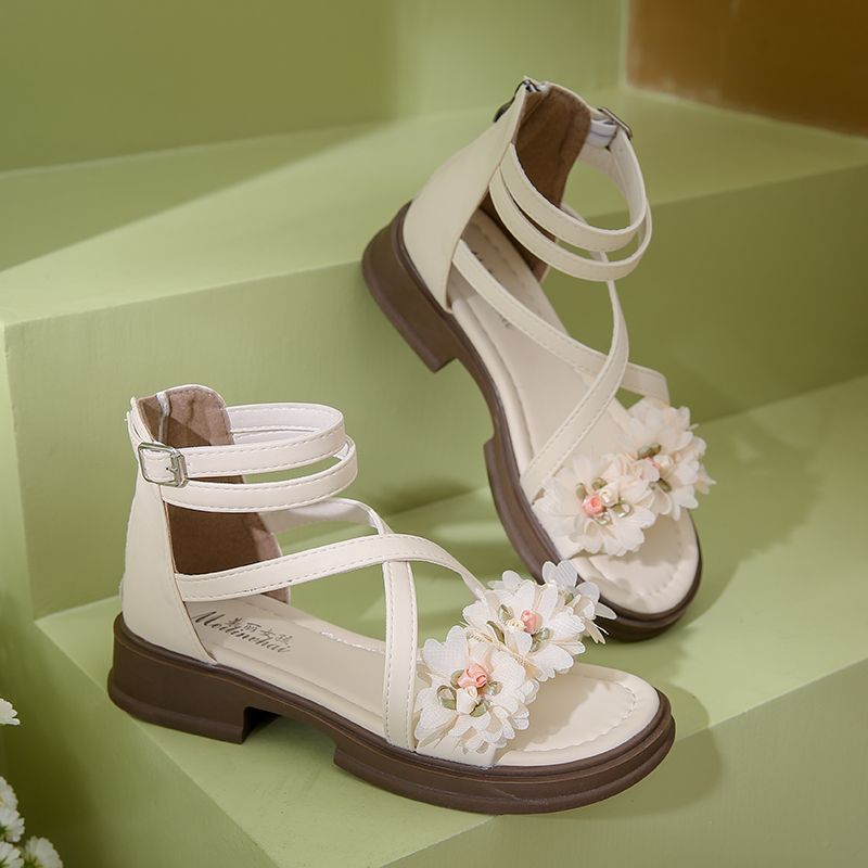 Fresh and Sweet Pearl Flowers with Skirt Sandals Women's 2024 New Thick-soled Open Toe Beach Shoes for Students