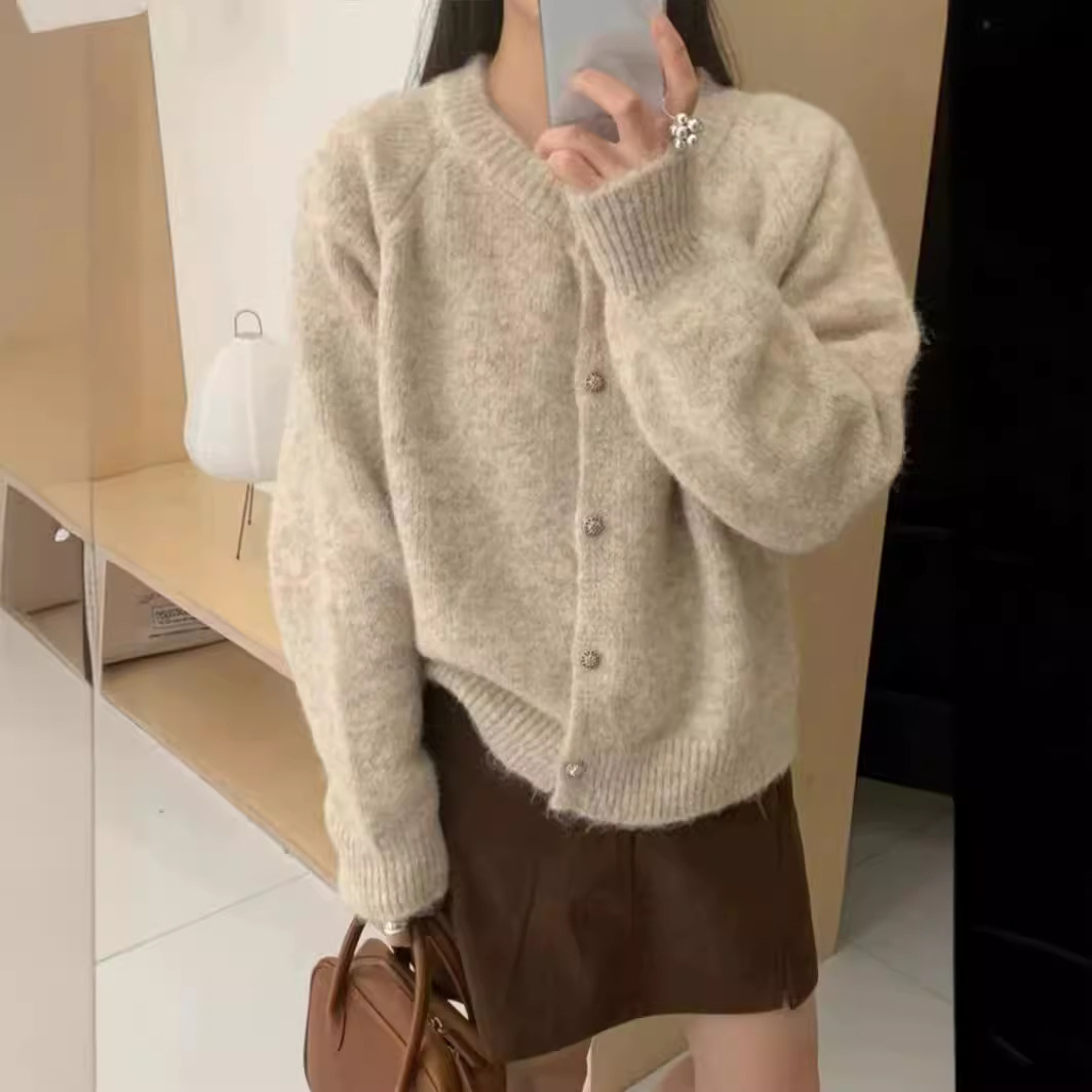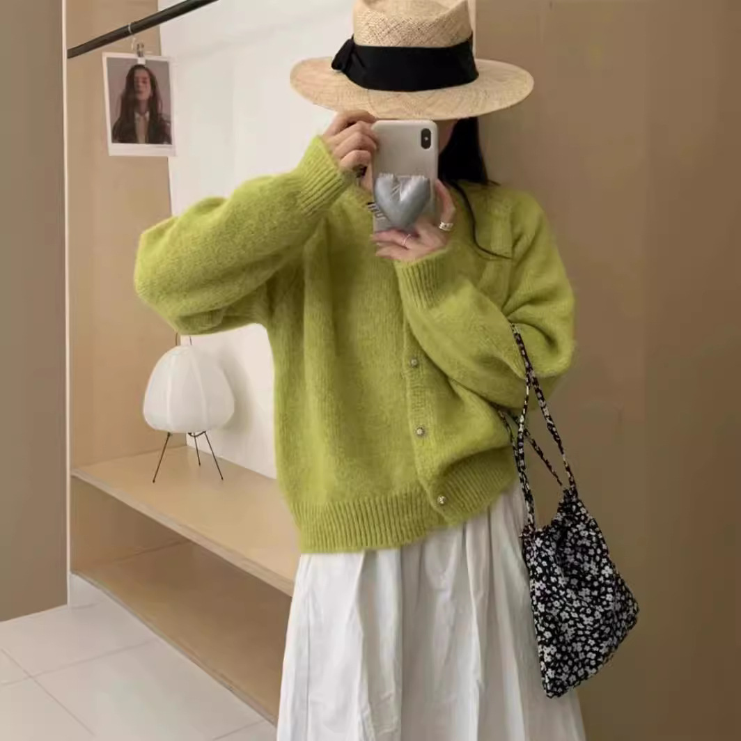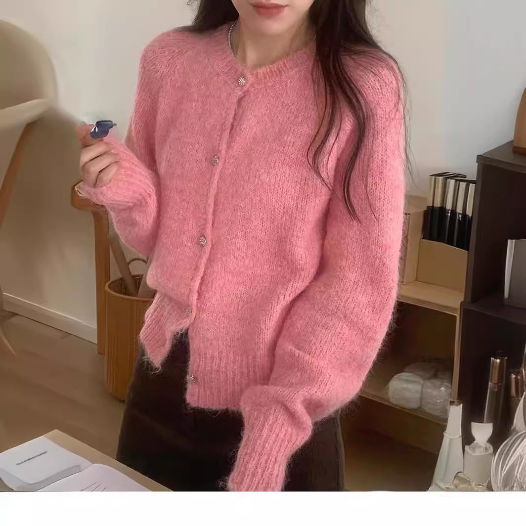 Fresh elegant soft glutinous early spring cardigan 2024 New Korean style sweet loose slimming round neck top sweater