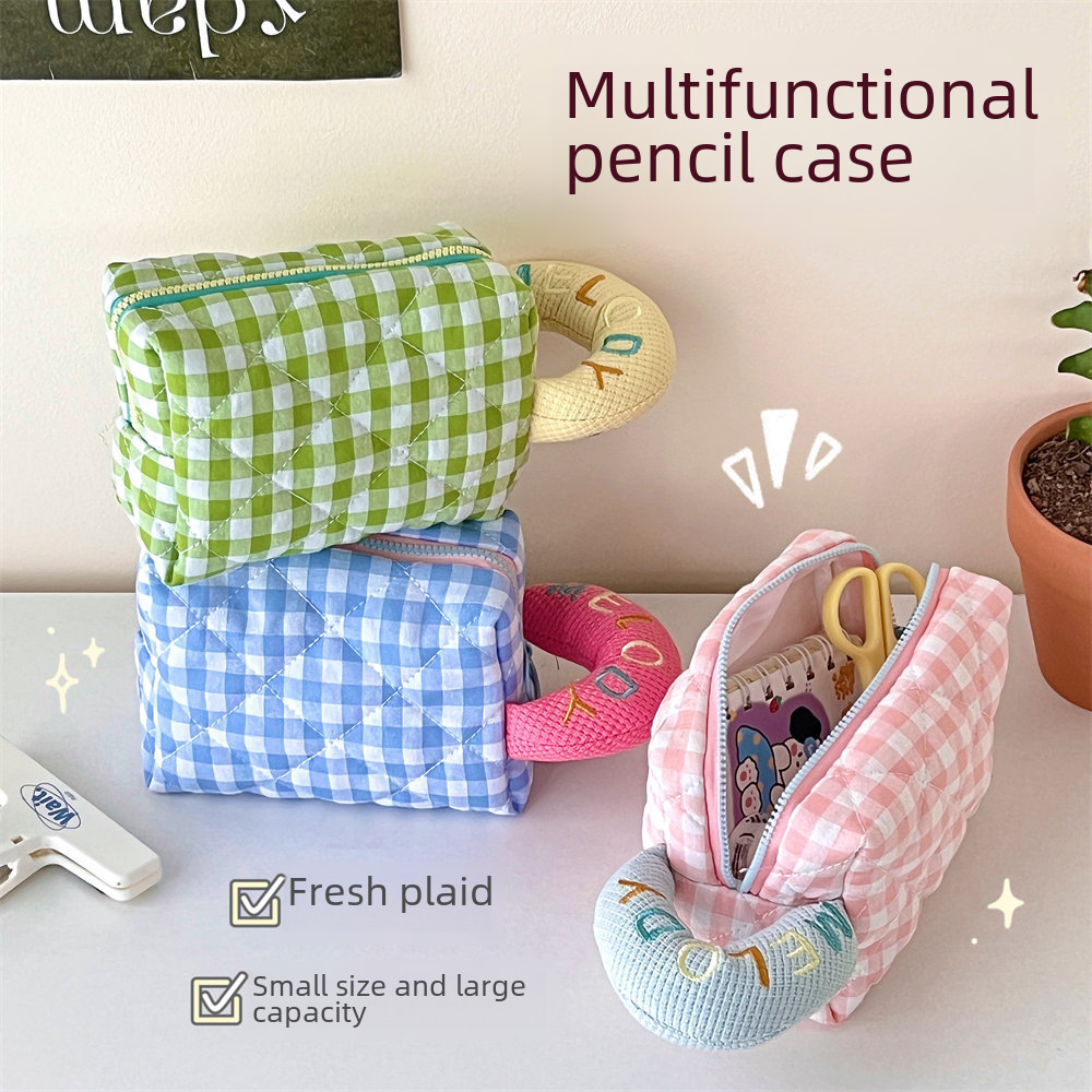 | nameOriginal | Fresh multi-functional Plaid cosmetic bag embroidered handbag cosmetic storage bag female student portable pencil case |