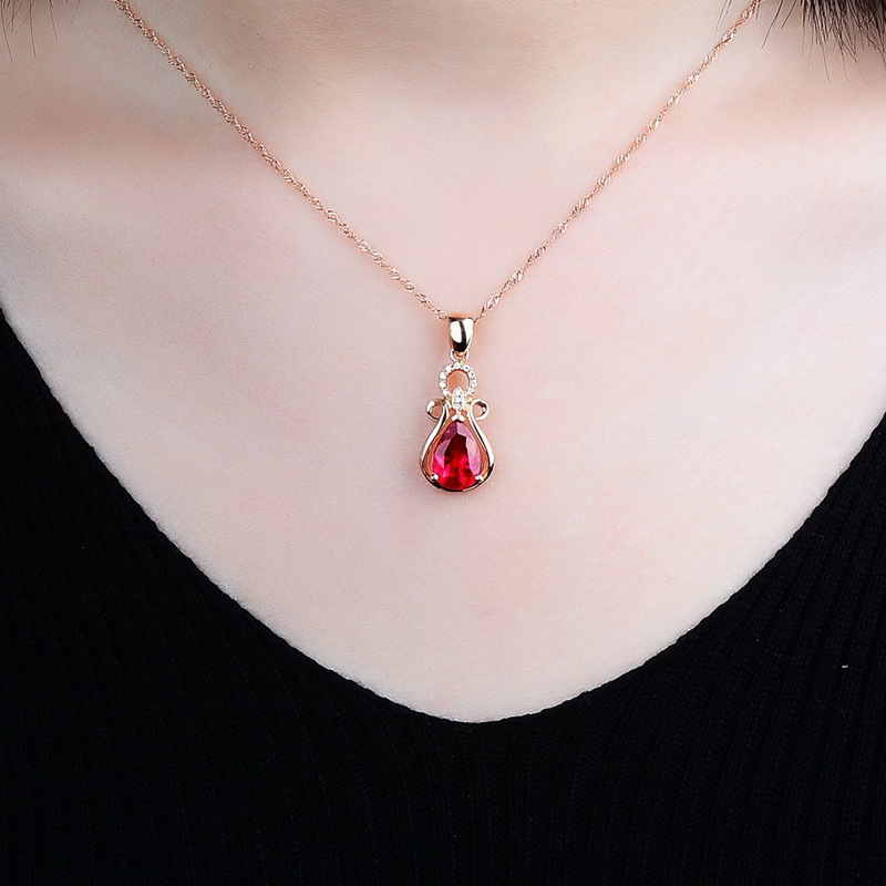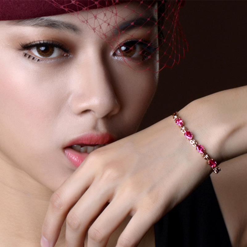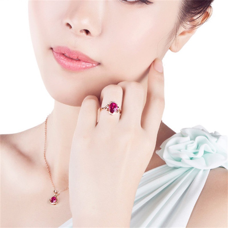 | nameOriginal | Fresh pink crystal bracelet European and American opening ring Ruby tassel ear hook Red tourmaline rose gold pendant set |