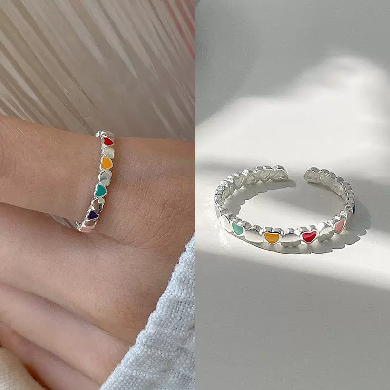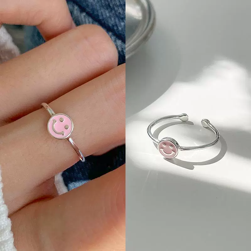 Fresh Rainbow Smile Face Ring Female Korean Version Fashion Smile Smile Love Love Open Ring Ring INS Stacking Finger Precepts