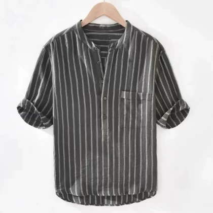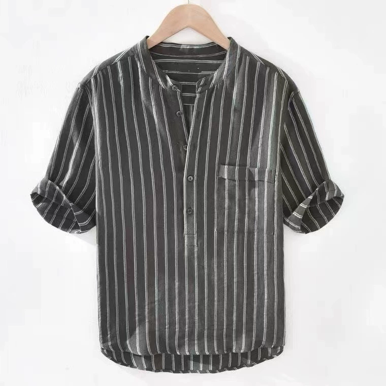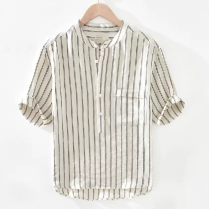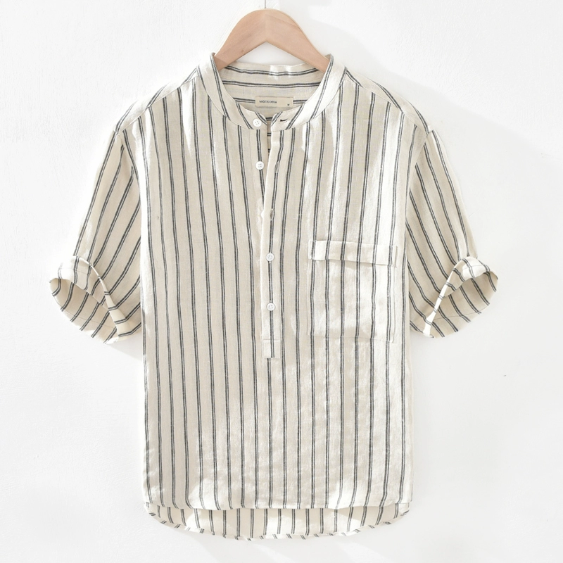 | nameOriginal | Fresh, short-sleeved, simple and versatile cotton and linen striped shirt |