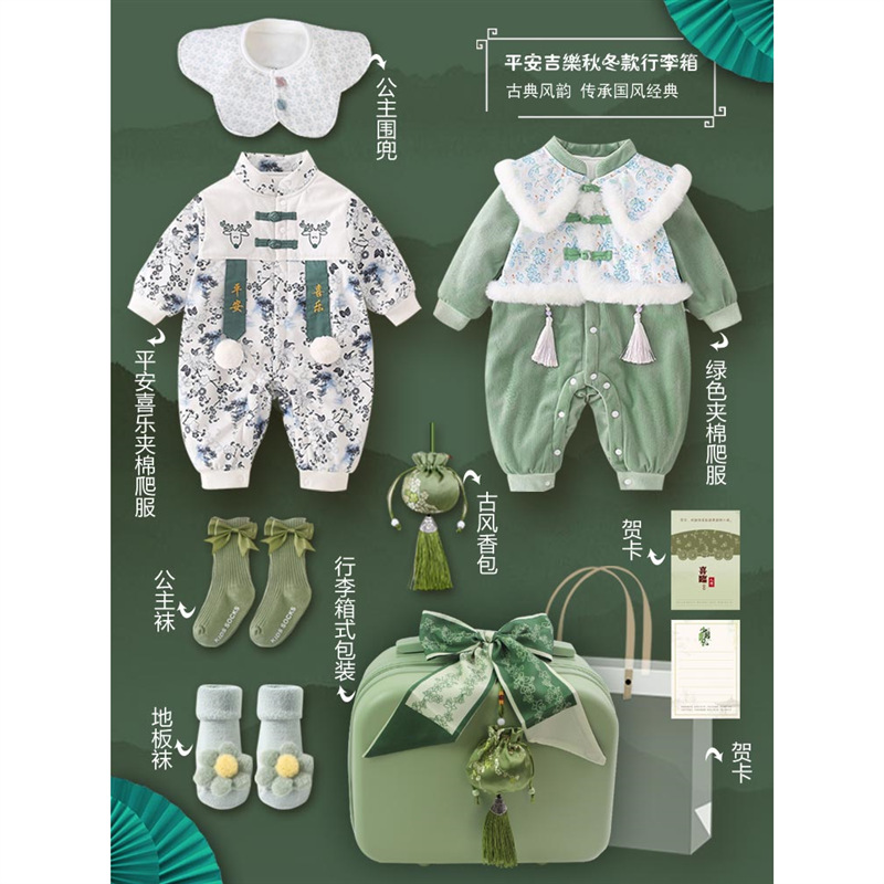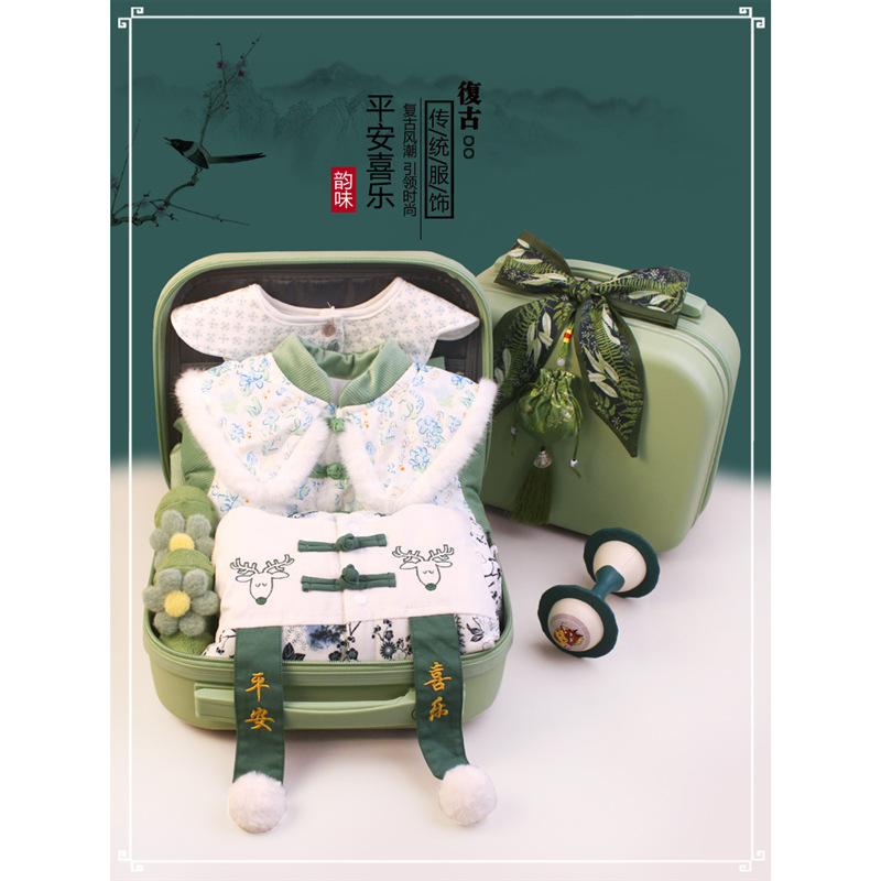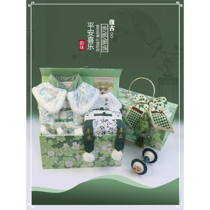 | nameOriginal | Fresh small national style full moon gift autumn and winter gift box cheongsam Green meet baby girl new baby |