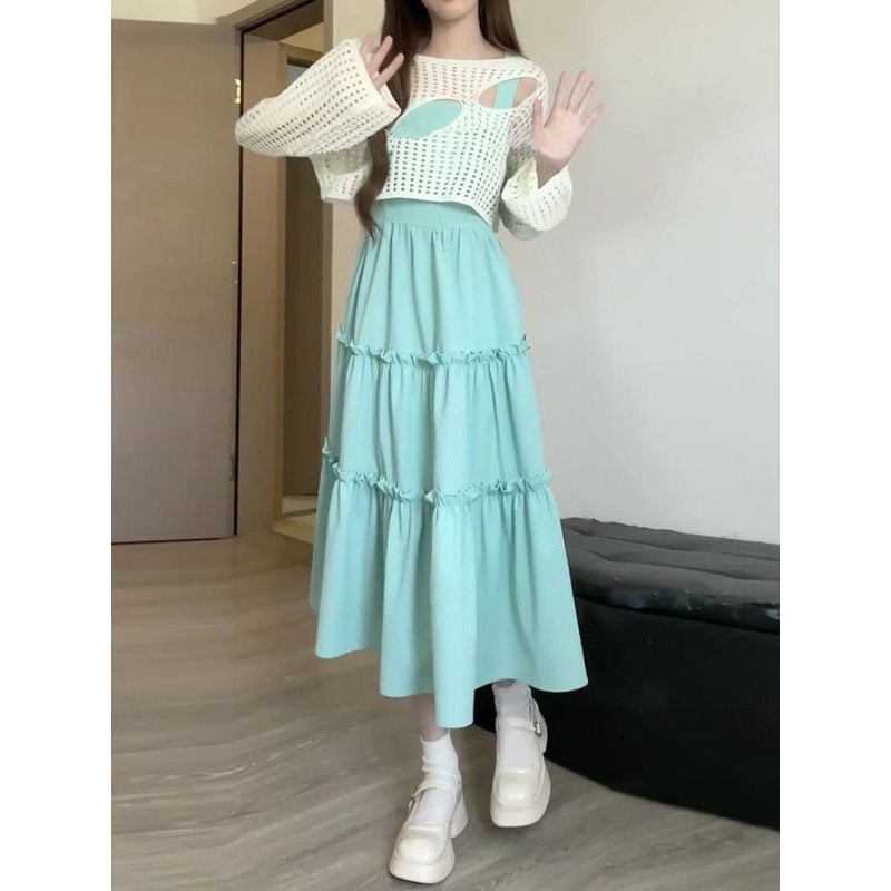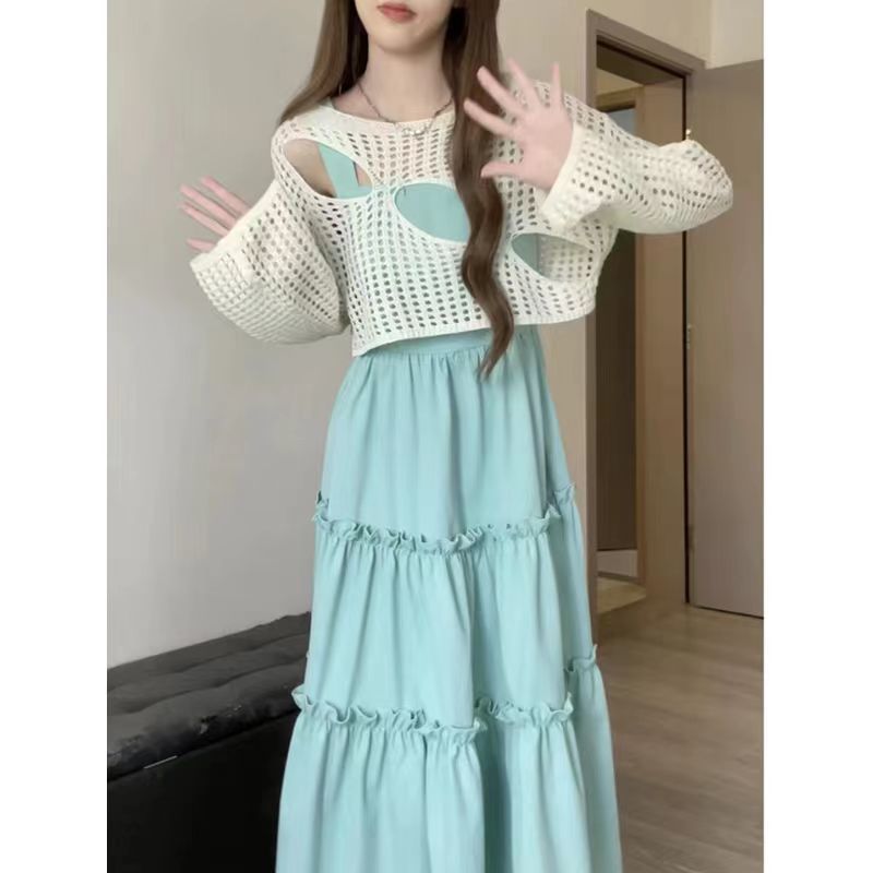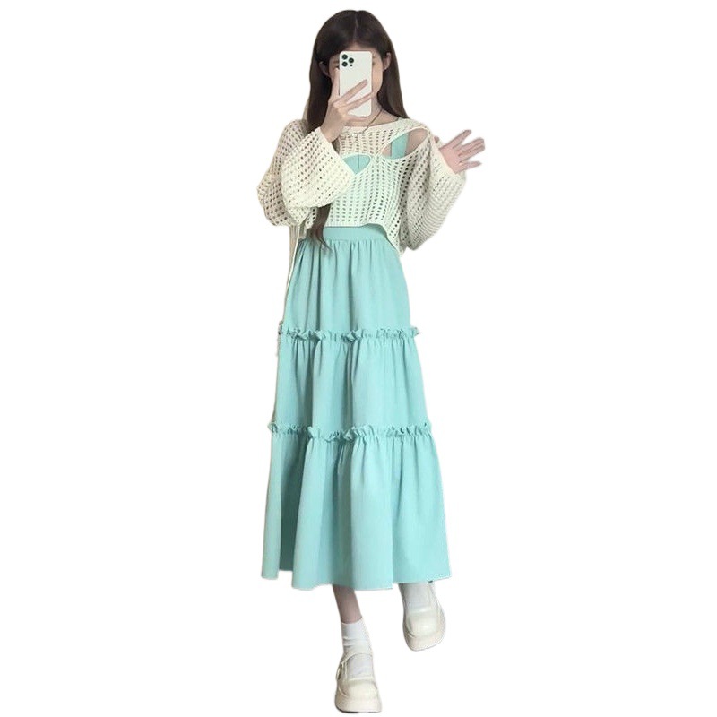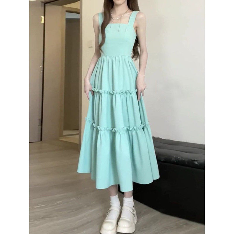 | nameOriginal | Fresh Style Sling dress Women's 2024 Summer New French Style Waisted Slimming Age-reducing Layered Design Long Dress |