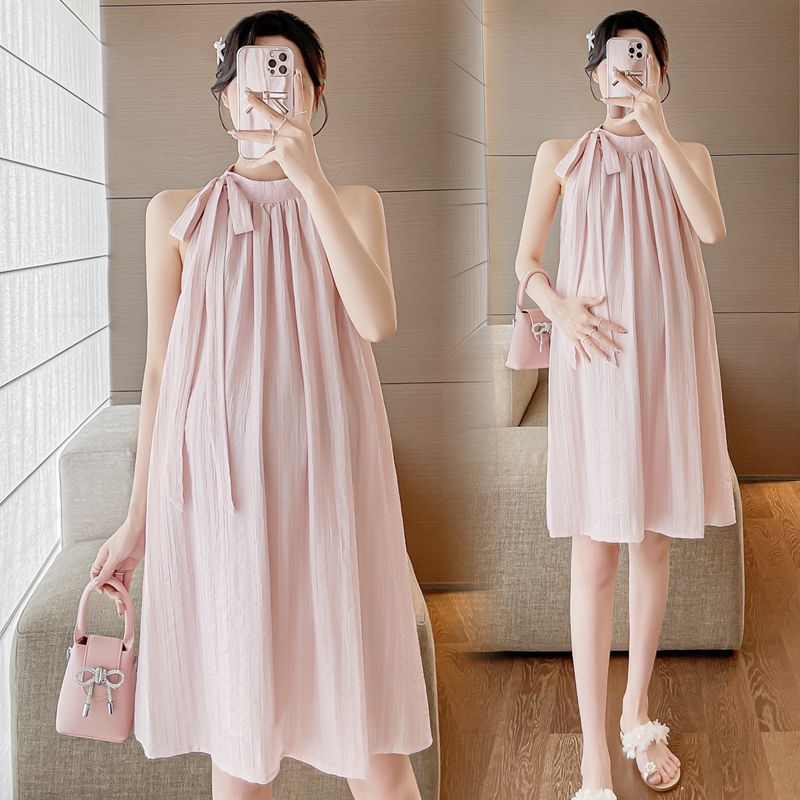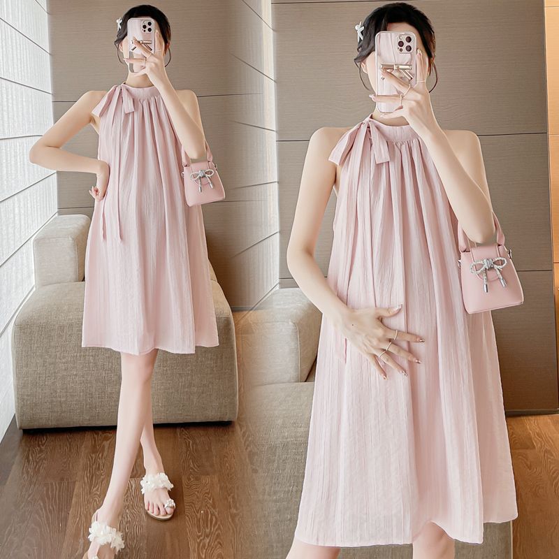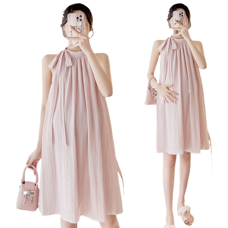 Fried Color Linen Front and Back Wearing Vest Hanging Neck Sleeveless dress Loose Long Dress for Women Xia Qingya Green Cotton