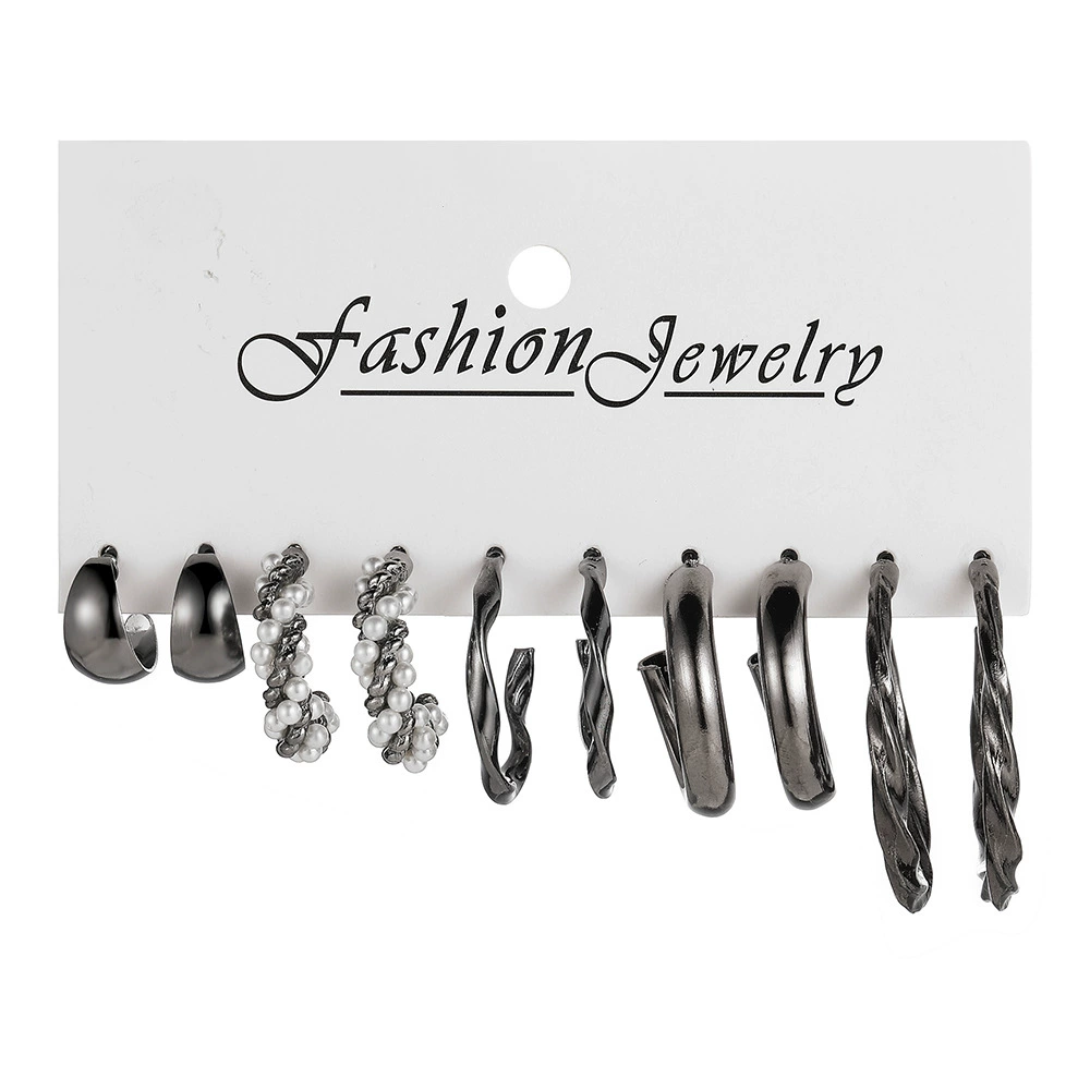 Fried dough twist earring with 6 pairs of metal Earrings