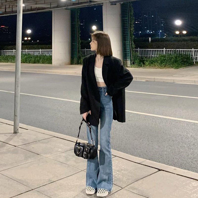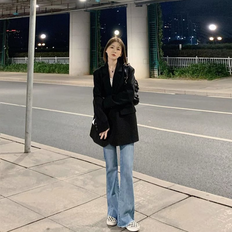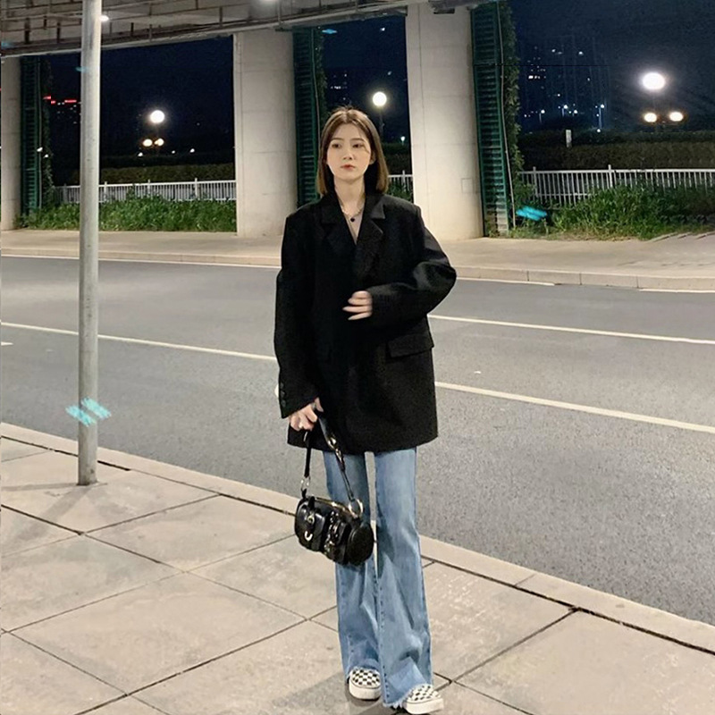 Fried Street Black Small Suit Jacket Women's Spring and Autumn 2024 New Korean Loose Small Suit Suit Jacket