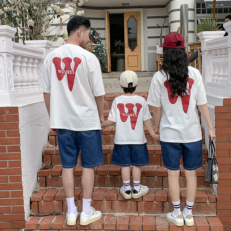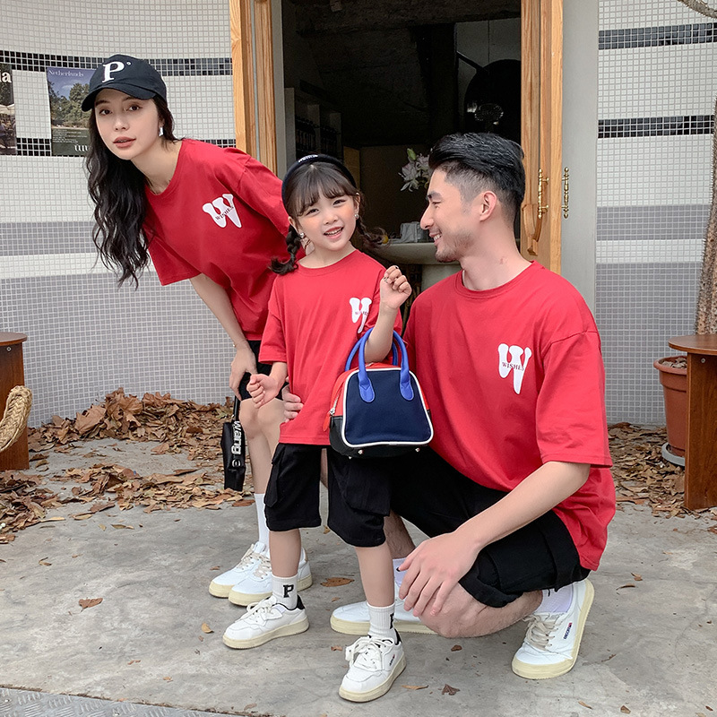 Fried Street Parent-Child Suit Family of Three Summer Clothes Internet Red Printed Short-Sleeved T-Shirt Western Style Mother-Child Mother-Daughter High-end Parent-Child Suit