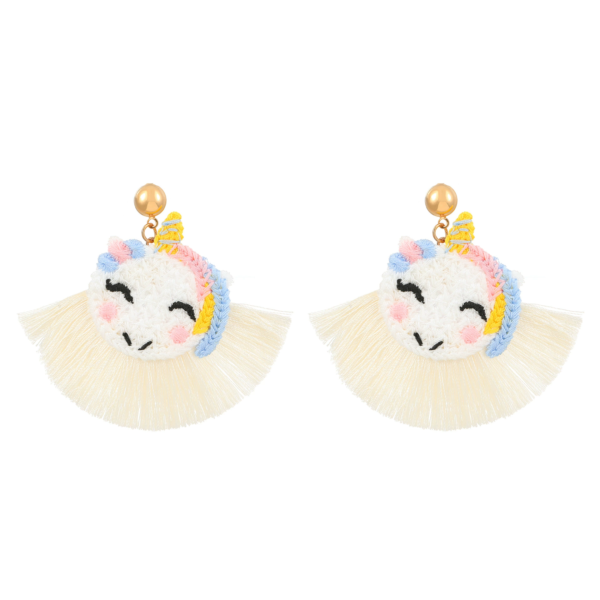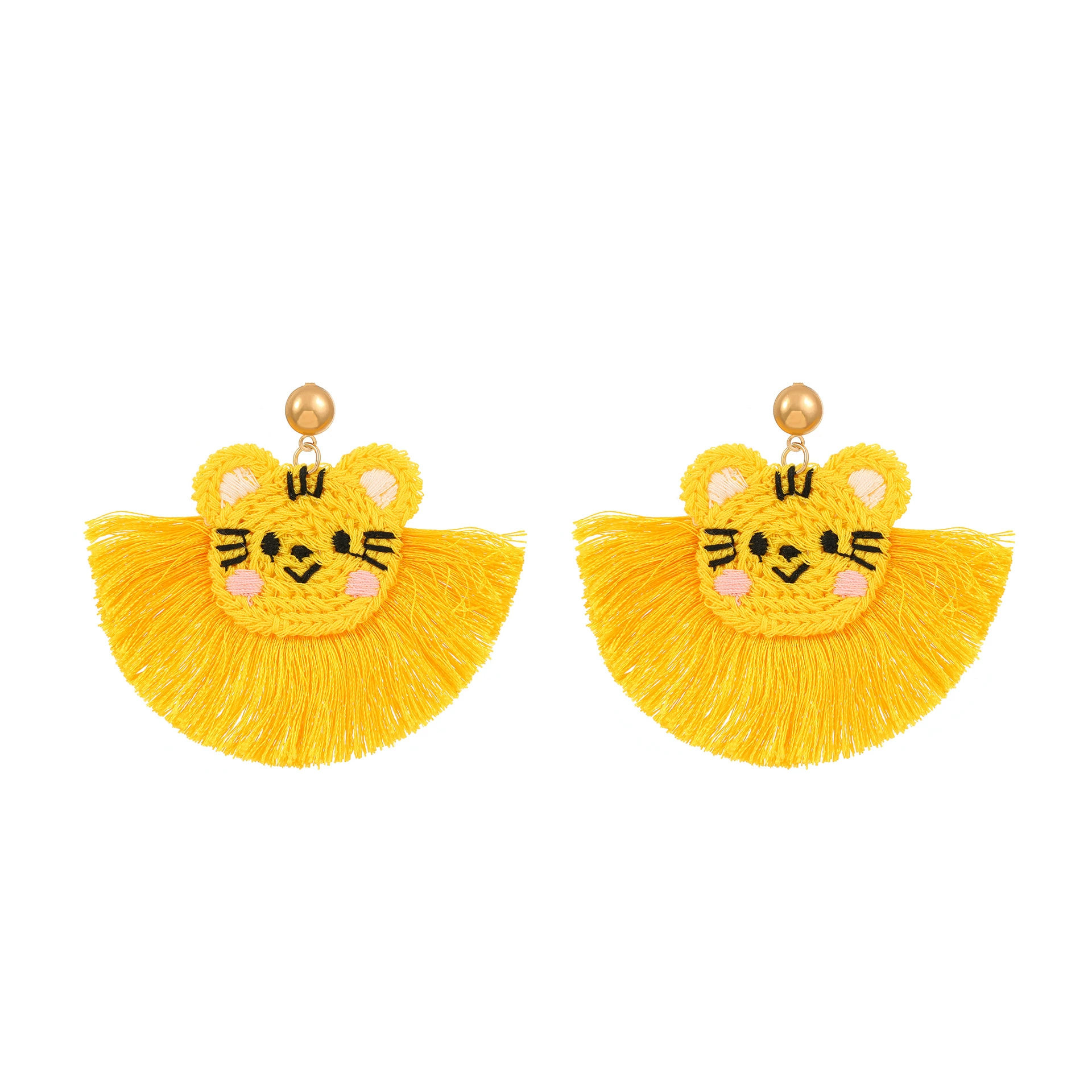 Fringed animal earrings exaggerated fan-shaped tassel unicorn tiger cat fox earrings for women