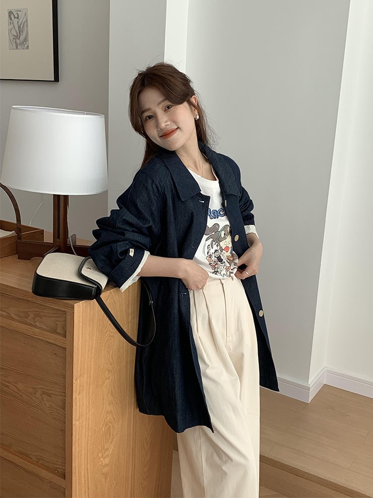| nameOriginal | from anna mid-length simple Korean style trench coat women's 2024 autumn loose single-breasted versatile overcoat |