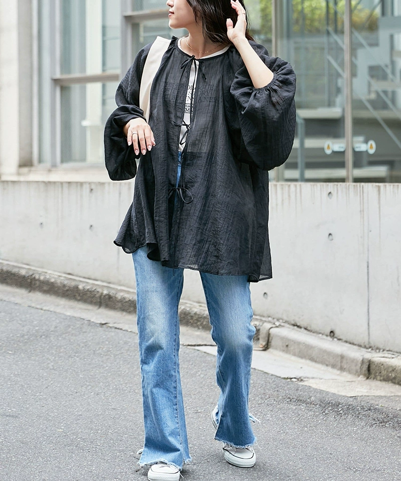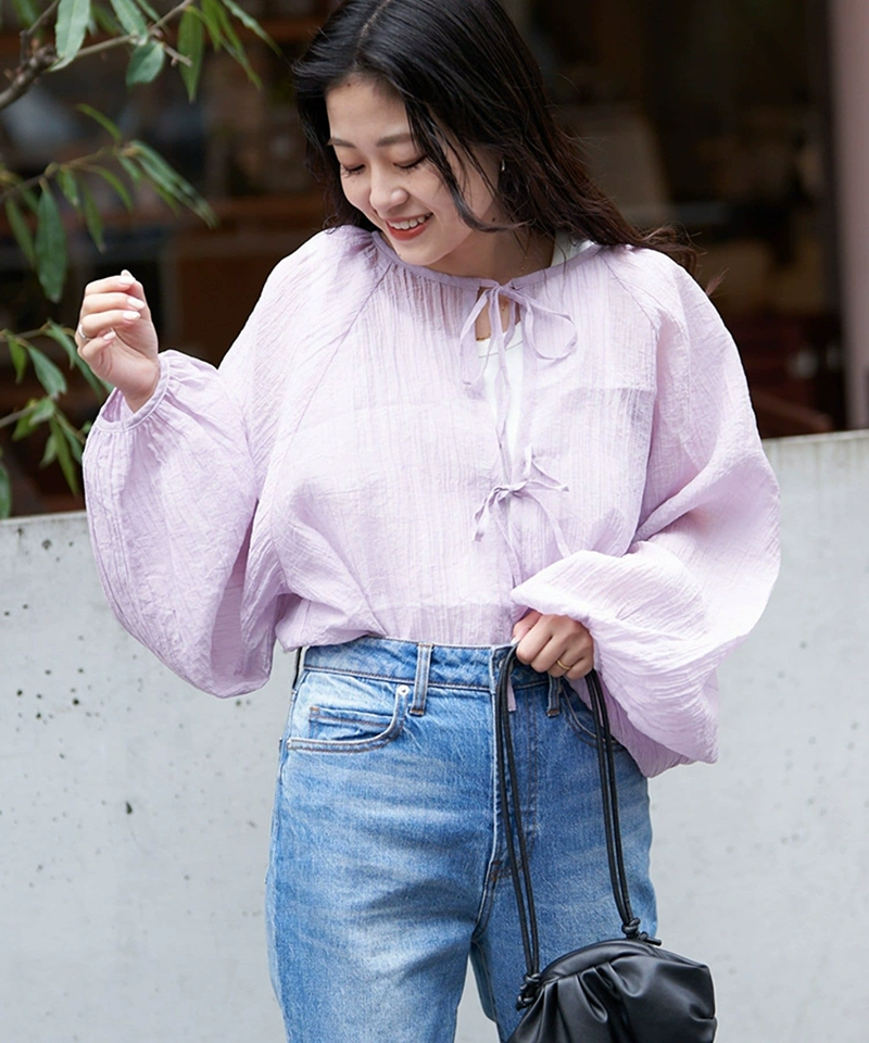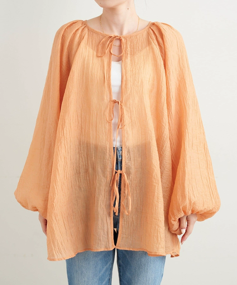 | nameOriginal | Front and back twice willow pleated sun protection shirt with bow, puff sleeves, see-through top, air-conditioning shirt for women |