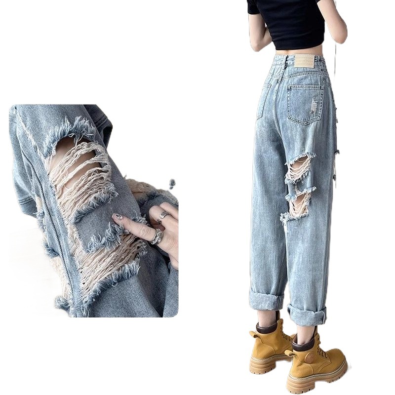 | nameOriginal | Front and rear ripped harem jeans women's spring and autumn thin 2024 New loose small beggar daddy pants |