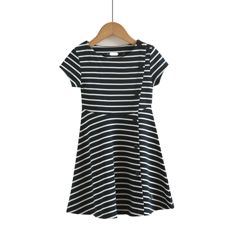 | nameOriginal | Front-breasted girls striped dress summer new baby girl short-sleeved fashionable long t-shirt skirt |