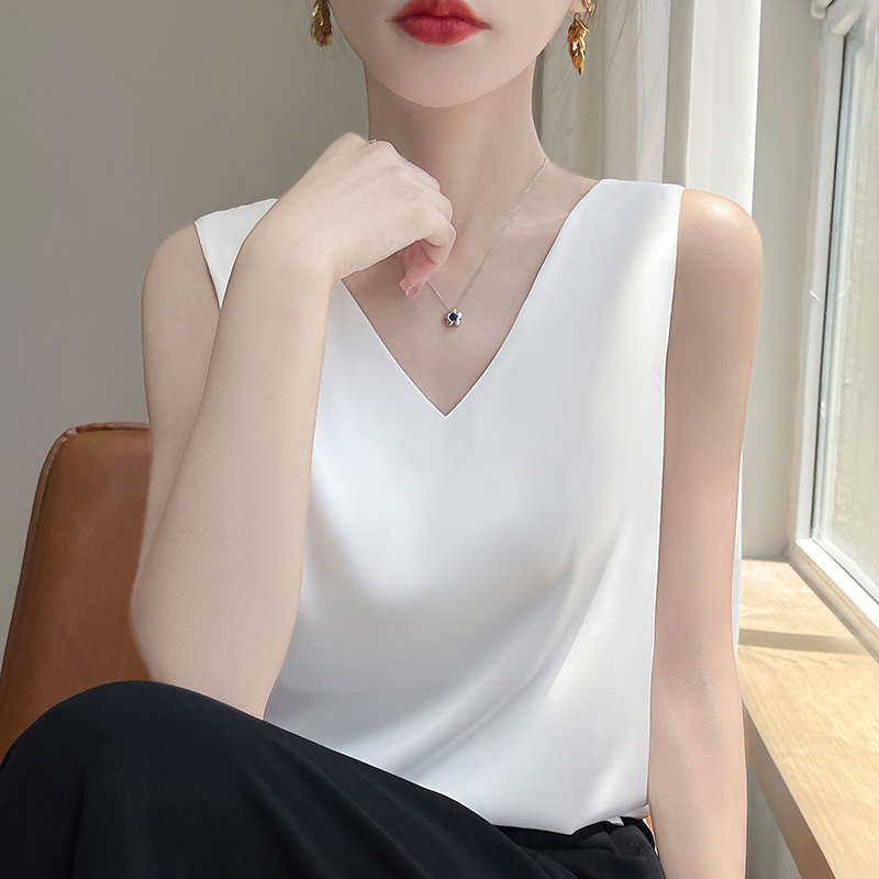 | nameOriginal | Front V Rear Round Two-Wear Camisole Women's Summer Inner Wear Outer Wear Silk Satin Loose Sleeveless Base Top |