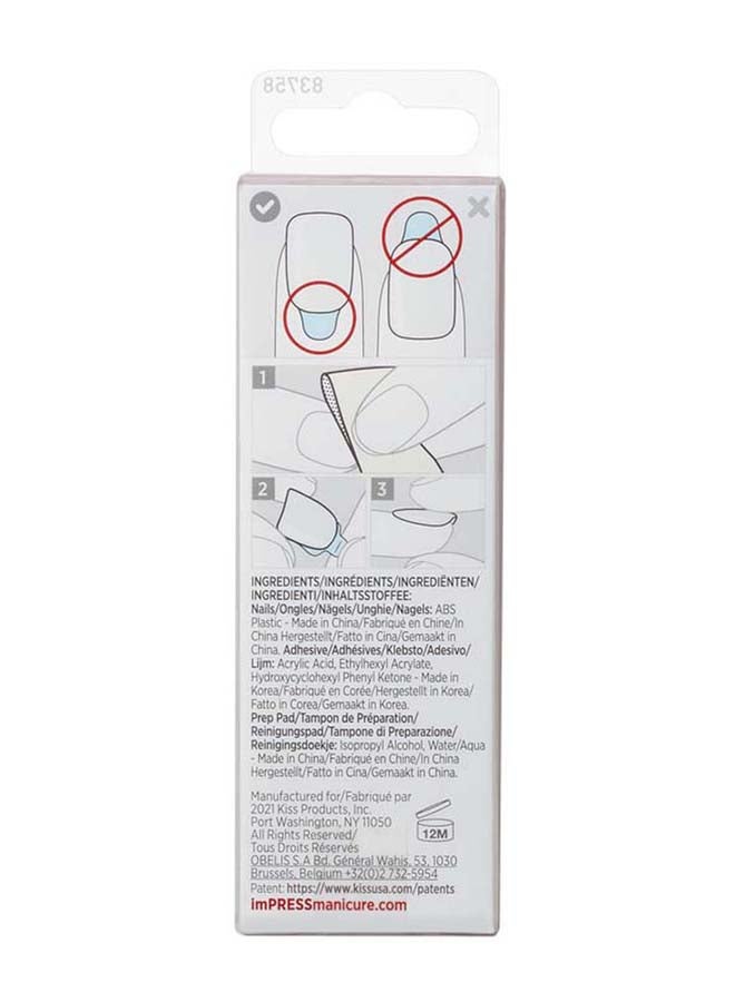 Impress Color Nails Frosting is a set of high-quality, easy-to-apply press-on nails that will give you a stunning, frosted finish. These nails are perfect for anyone who wants to add a touch of glamour to their look without spending hours at the salon. The set includes 30 nails in various sizes, so you can find the perfect fit for your fingers. The nails are made with a durable, long-lasting material that will stay put for up to a week. With Impress Color Nails Frosting, you can achieve a professional-looking manicure in minutes, without any mess or fuss. Whether you’re getting ready for a special occasion or just want to add some sparkle to your everyday look, these nails are the perfect choice.