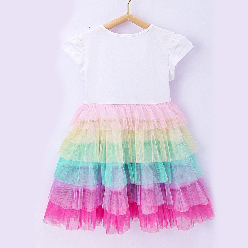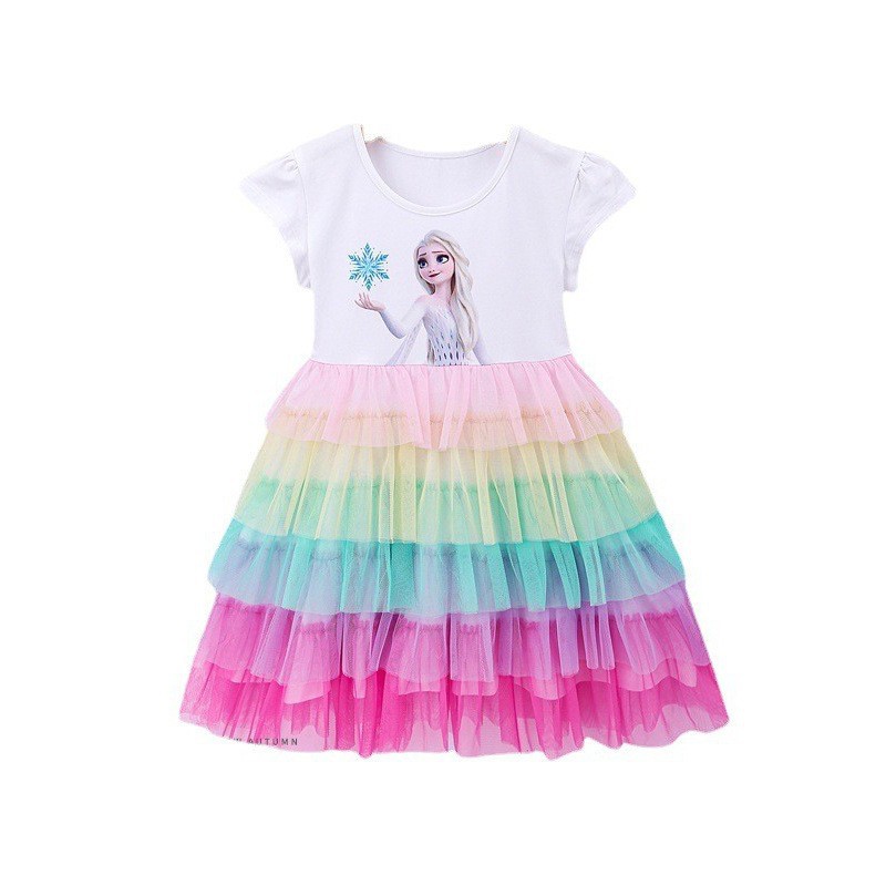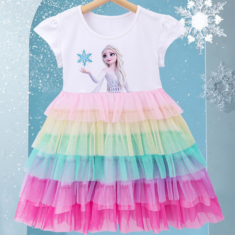 Frozen Aisha Summer Dress Girls Princess Dress Aisha Children’s Dress Short Sleeve Mesh Rainbow Cake Skirt