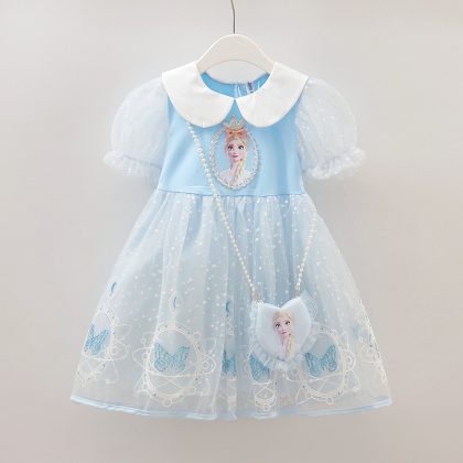 Frozen Princess Aisha Dress Summer Short-sleeved Girls 2023 Stylish Aisha Dress Yarn Aisha Dress