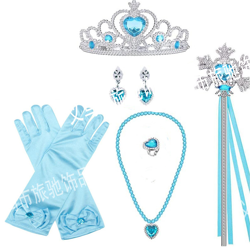 | nameOriginal | Frozen Princess Aisha Necklace Bracelet suit Girls Cos Anna Princess Dress Gloves Snowflake Stick suit |