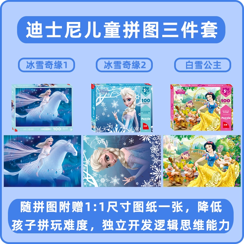 Bingxueqi puzzle children’s puzzle 100 tablets Disney girls 3 to 6 years old Princess Esha New Year gift