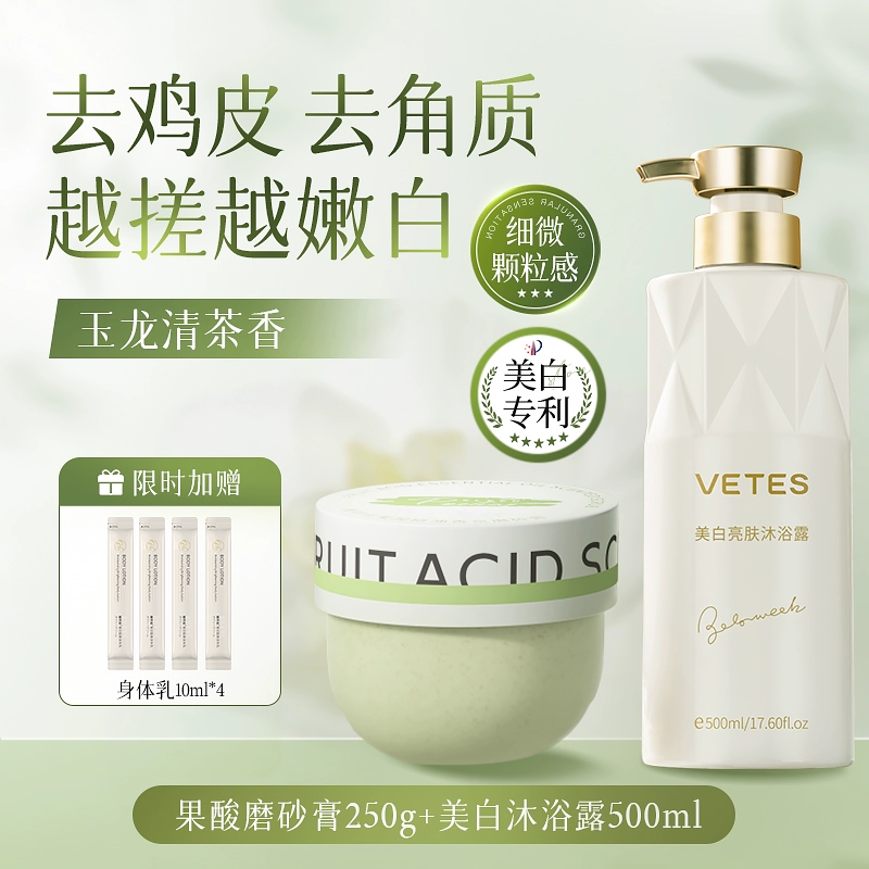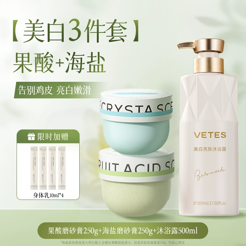 | nameOriginal | Fruit acid whitening scrub, body whitening, whole body exfoliation, dead skin removal, goosebump removal, joint removal, melanin removal |
