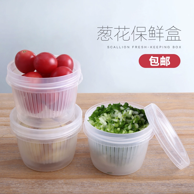 | nameOriginal | Fruit and green onion crisper kitchen transparent onion ginger garlic storage box refrigerator portable plastic round drain sealed box |