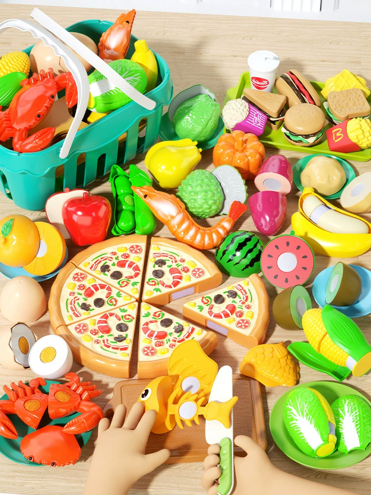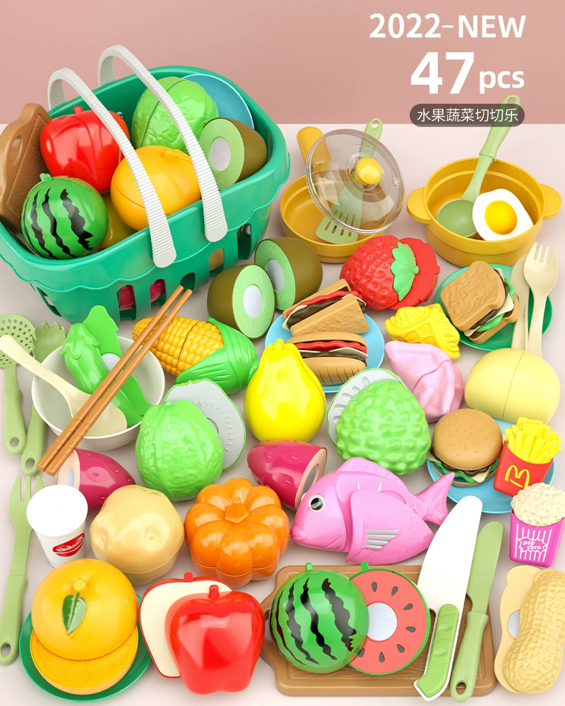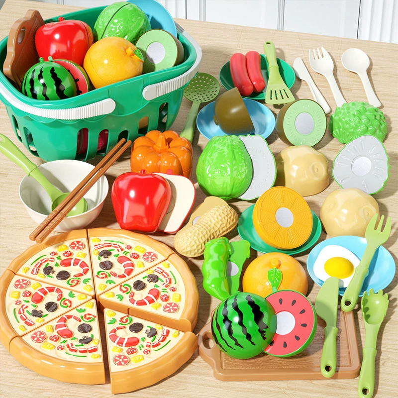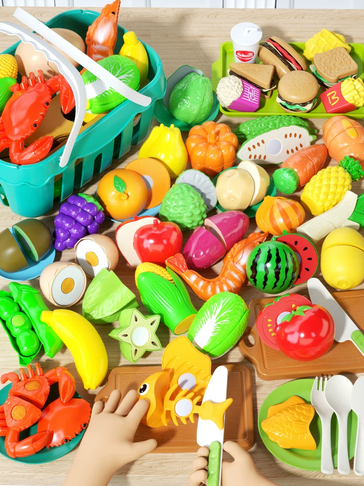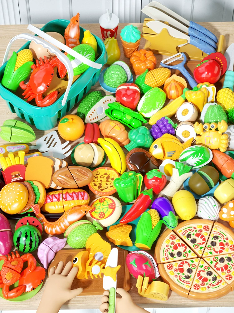 | nameOriginal | Fruit and vegetable cutlery fast food pizza burger sandwich peelable children's kitchen toy shopping basket |