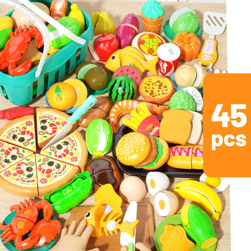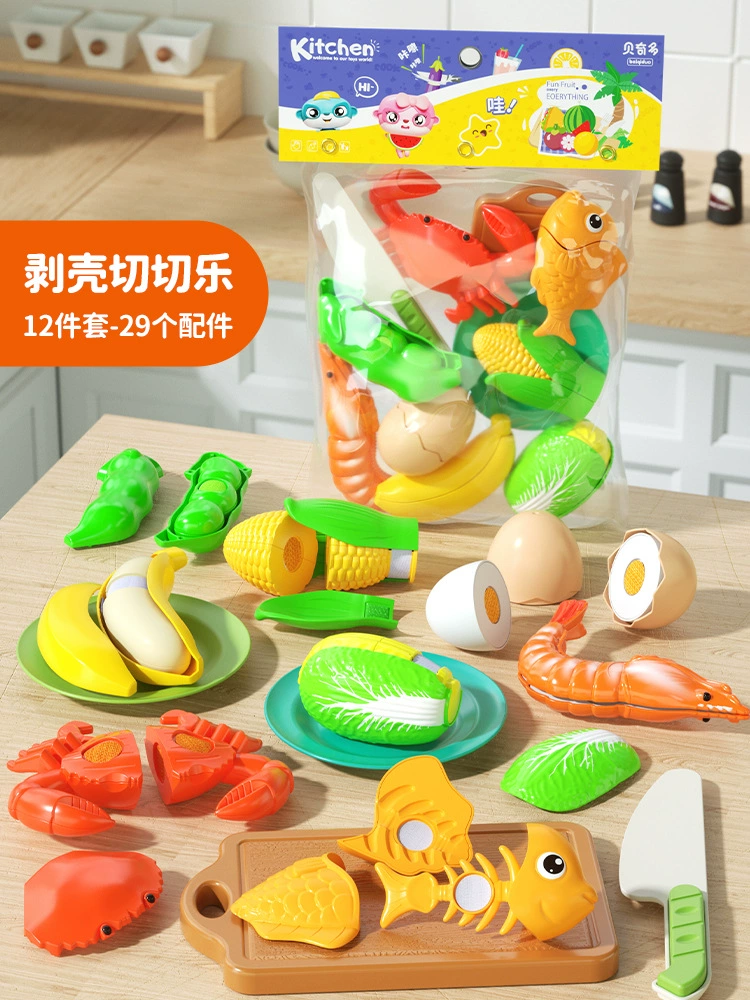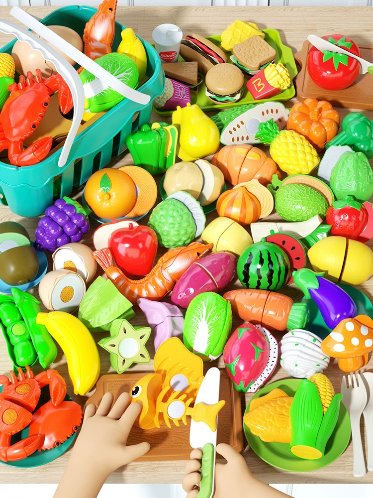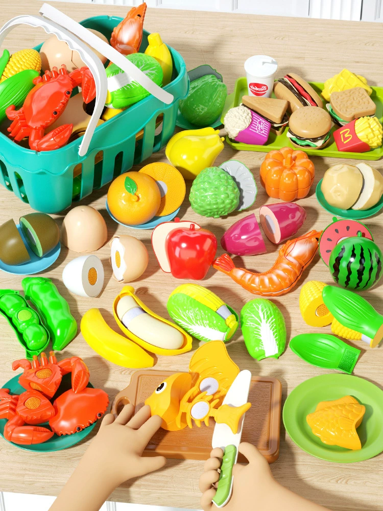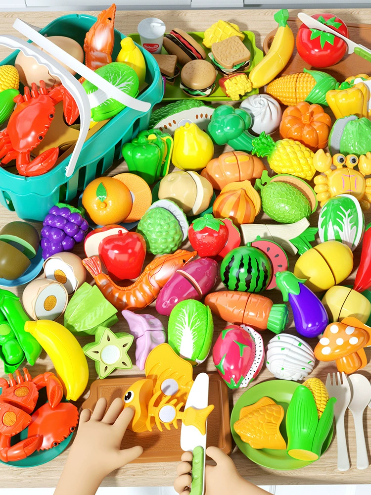 | nameOriginal | Fruit and vegetable cutlery fast food pizza burger sandwich peelable children's kitchen toy shopping basket |