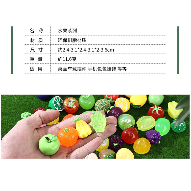 | nameOriginal | Fruit food and play simulation desktop car decoration photo props micro landscape small ornaments luminous resin diy accessories |