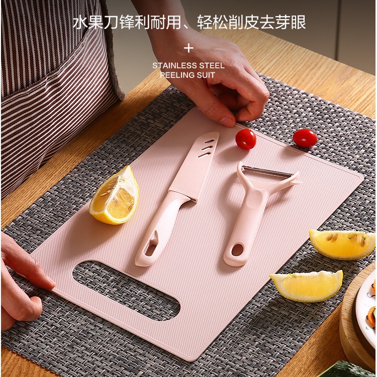 | nameOriginal | Fruit knife three-piece kitchen household stainless steel melon and fruit peeler cutting board simple practical stain-resistant portable suit |