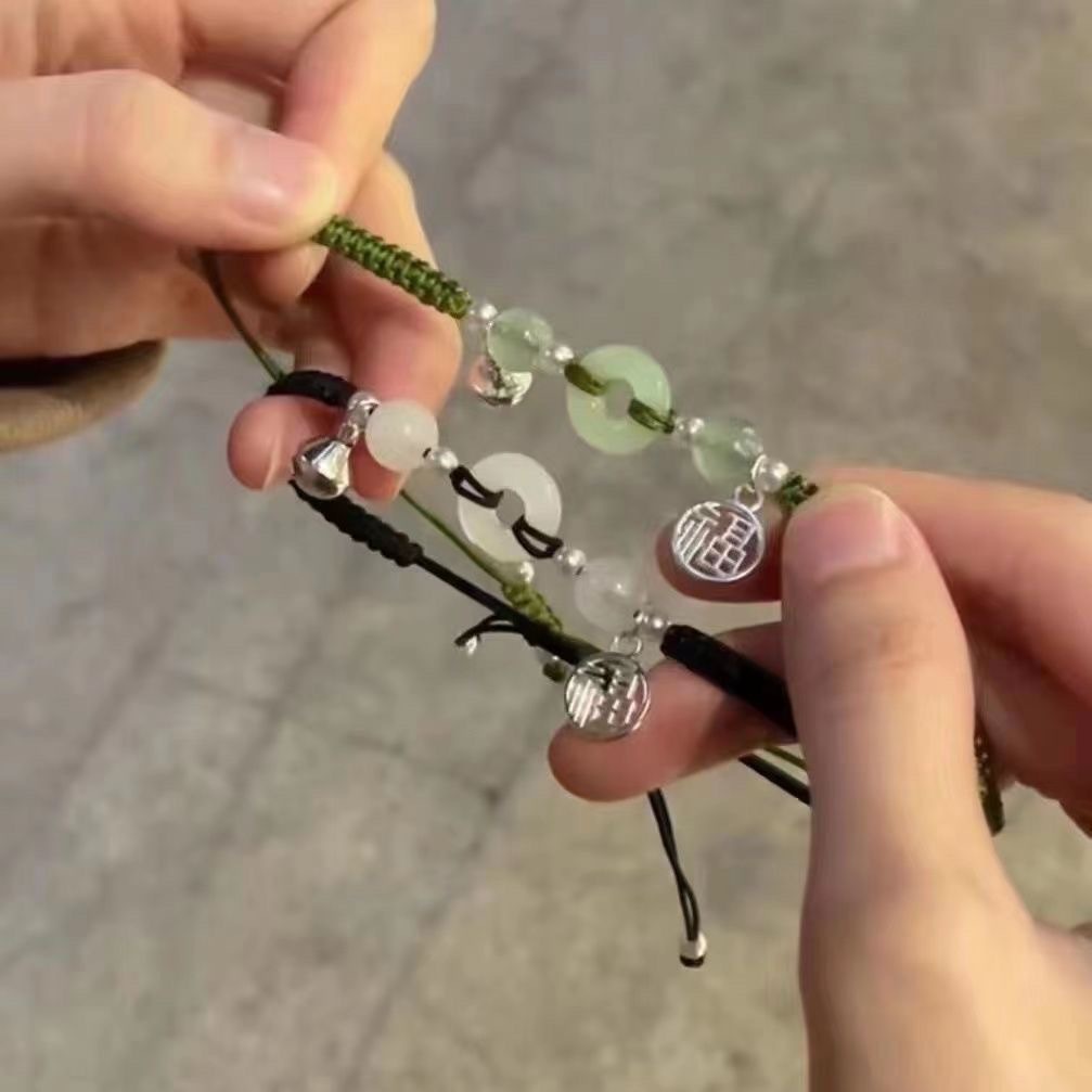 Fu brand Bell glass safety buckle bracelet female hand-woven bracelet girlfriends couple gift for student girlfriend