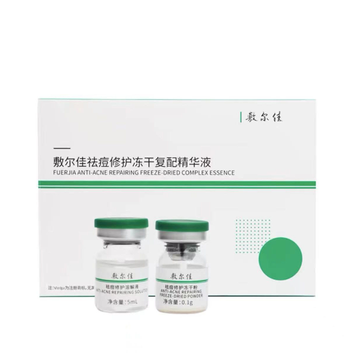 Fu Erjia Anti-acne Small Green Bottle Freeze-dried Powder 3 for Essence Soothing, Repair, Hydration, Moisturizing and Desalinating Sensitivity to Pockmarks