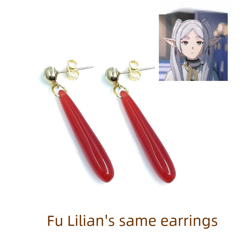 | nameOriginal | Fu Lilian's same style earrings anime jewelry peripheral red resin pendant earrings ear clip earrings |