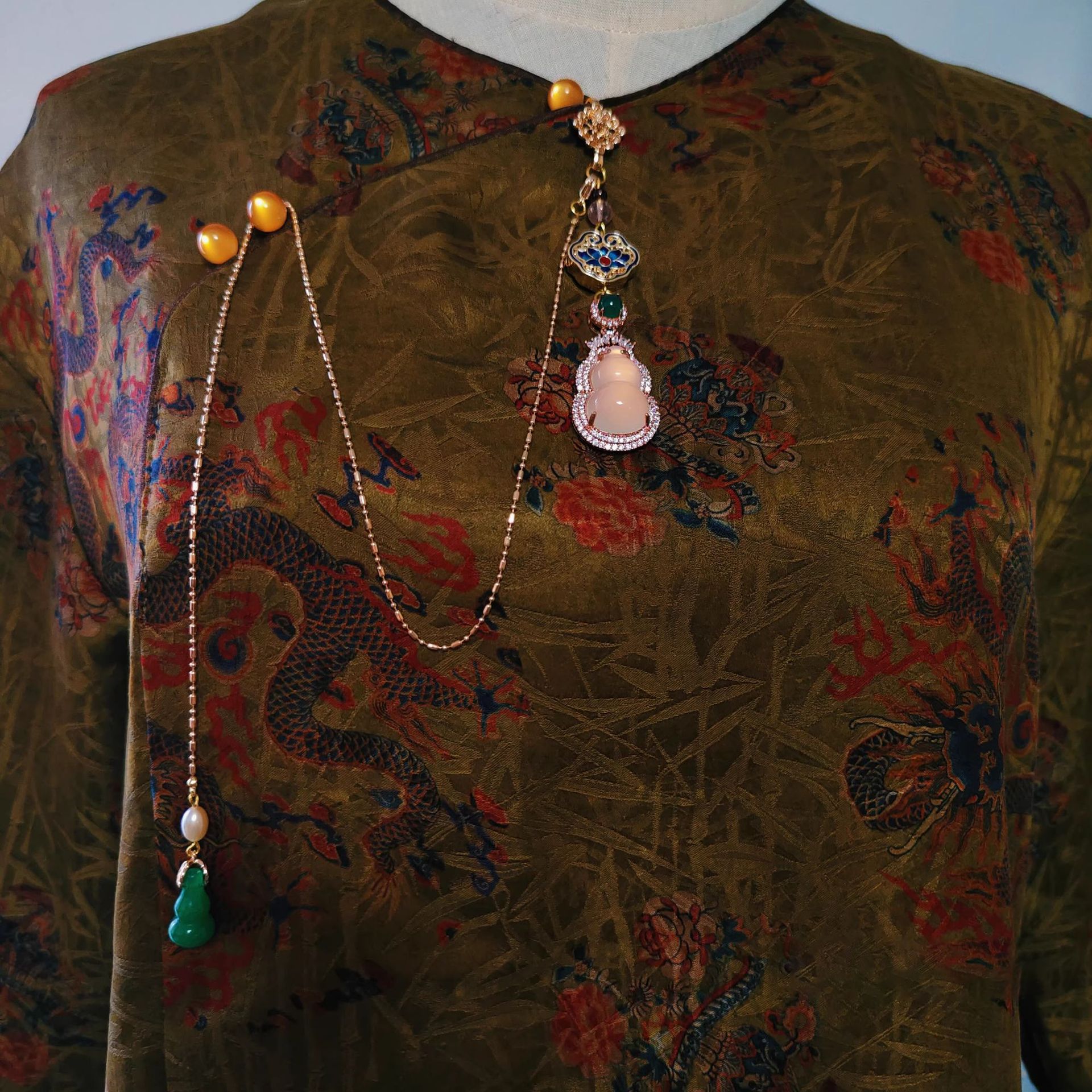 [Fu Lu often] original natural chalcedony gourd classical National style cheongsam placket pendant tassel Hanfu accessories