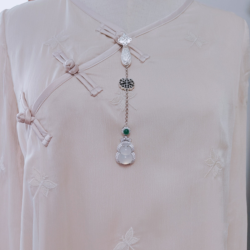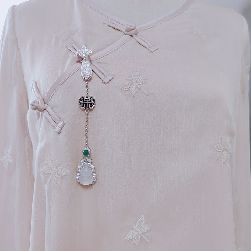 [Fu Lu Shuangquan] original Chinese style cheongsam placket pendant tassel natural chalcedony gourd Hanfu accessories for women