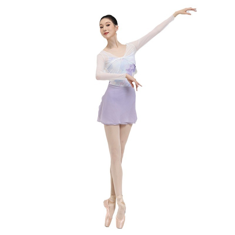 | nameOriginal | Fu Qi ballet dance practice clothes women's mesh blouse long sleeve gymnastics clothes outer wear short small waistcoat thin top |
