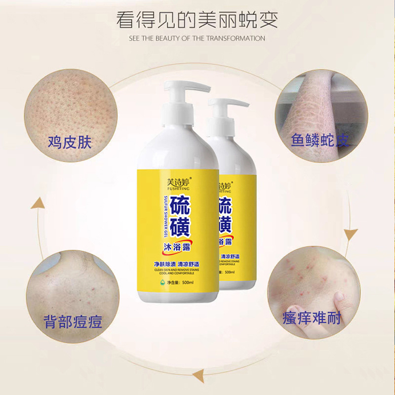 | nameOriginal | Fu Shi Ting sulfur shower gel deep cleaning mite household shower gel antibacterial refreshing oil control shower gel wholesale |